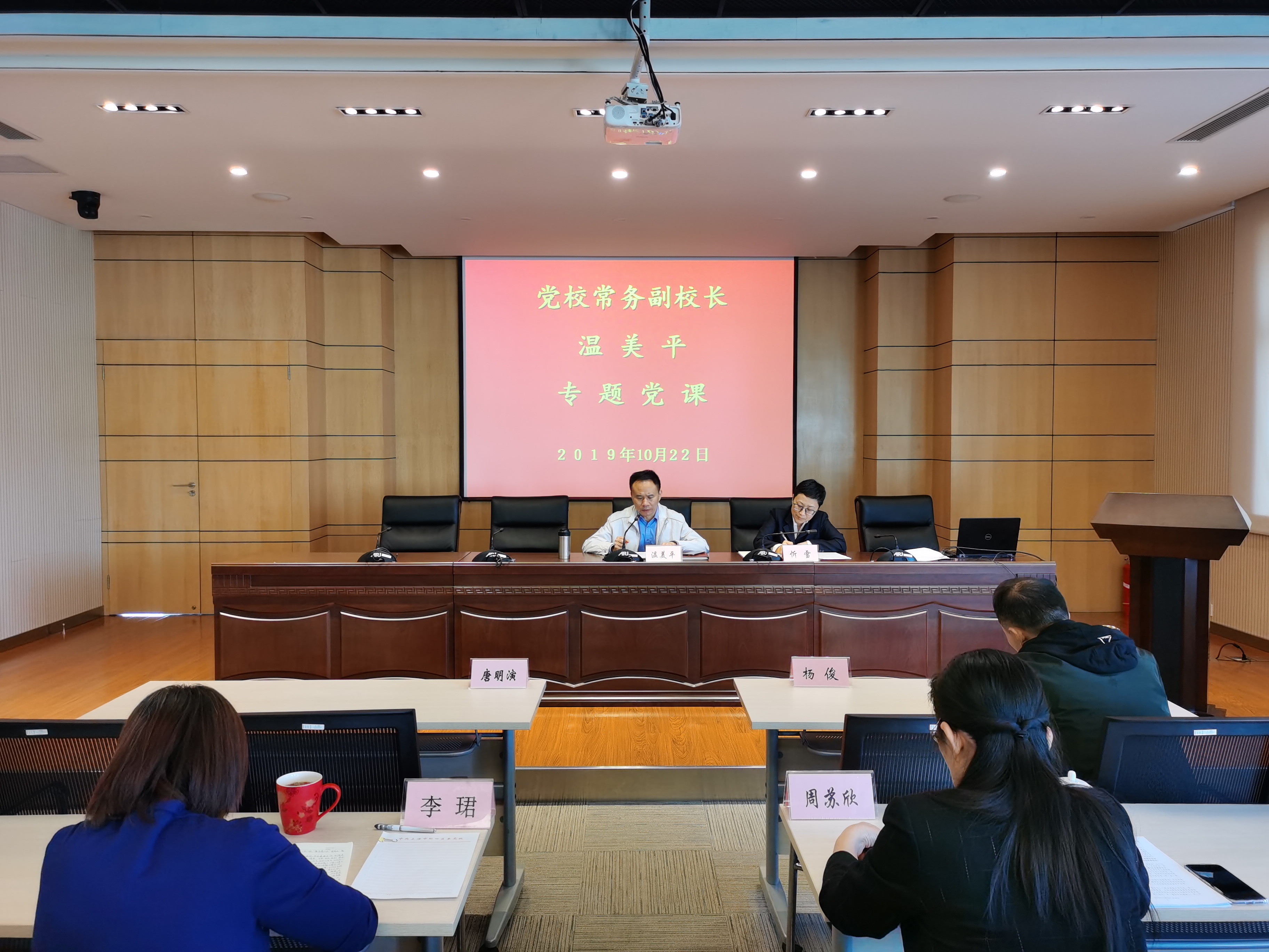 本网讯 10月22日,虹口区委党校常务副校长温美平上“走得再远都不能忘记来时的路——从党的发展历程看党的初心和使命”专题党课。区委党校全体教职员工、区委组织部唐明演参加了党课。