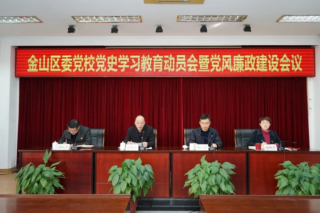 本网讯 3月10日,金山区委党校召开党史学习教育动员会暨党风廉政建设会。常务副校长孙秀强、副校长刘娥苹及全体教职工参加会议。会议由副校长郜工农主持。区纪委监委第一派驻纪检监察组组长吴浩应邀列席会议。