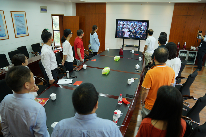 收看庆祝大会前,全体教职工举行了电子升国旗、唱国歌仪式,并集中观看了新中国成立70周年宣传片。