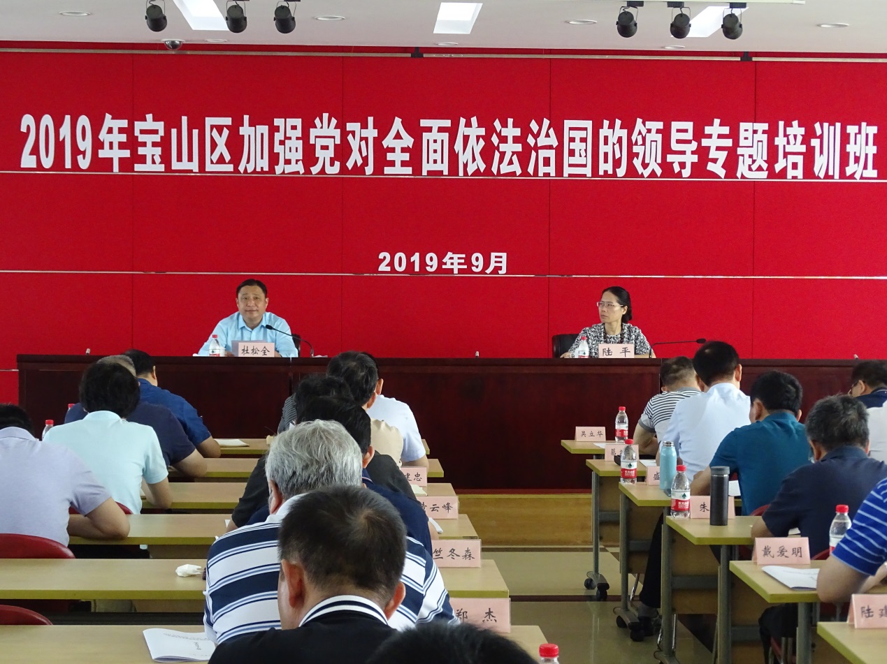 本网讯 9月17日,宝山区2019年“2+X”专题培训班——“加强党对全面依法治国的领导”专题培训班在宝山区委党校开班。宝山区委常委、政法委书记杜松全作开班动员,区委政法委副书记陆平主持,区政法各部门、各街镇(园区)的分管领导参加开班式。