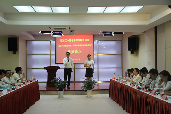 本网讯 9月9日晚上,青浦区中青年干部专题培训班举办“服务两大国家战略,中青年干部如何奋力担当”学员论坛。区委研究室主任朱加军、区委党校常务副校长陈菊英出席。