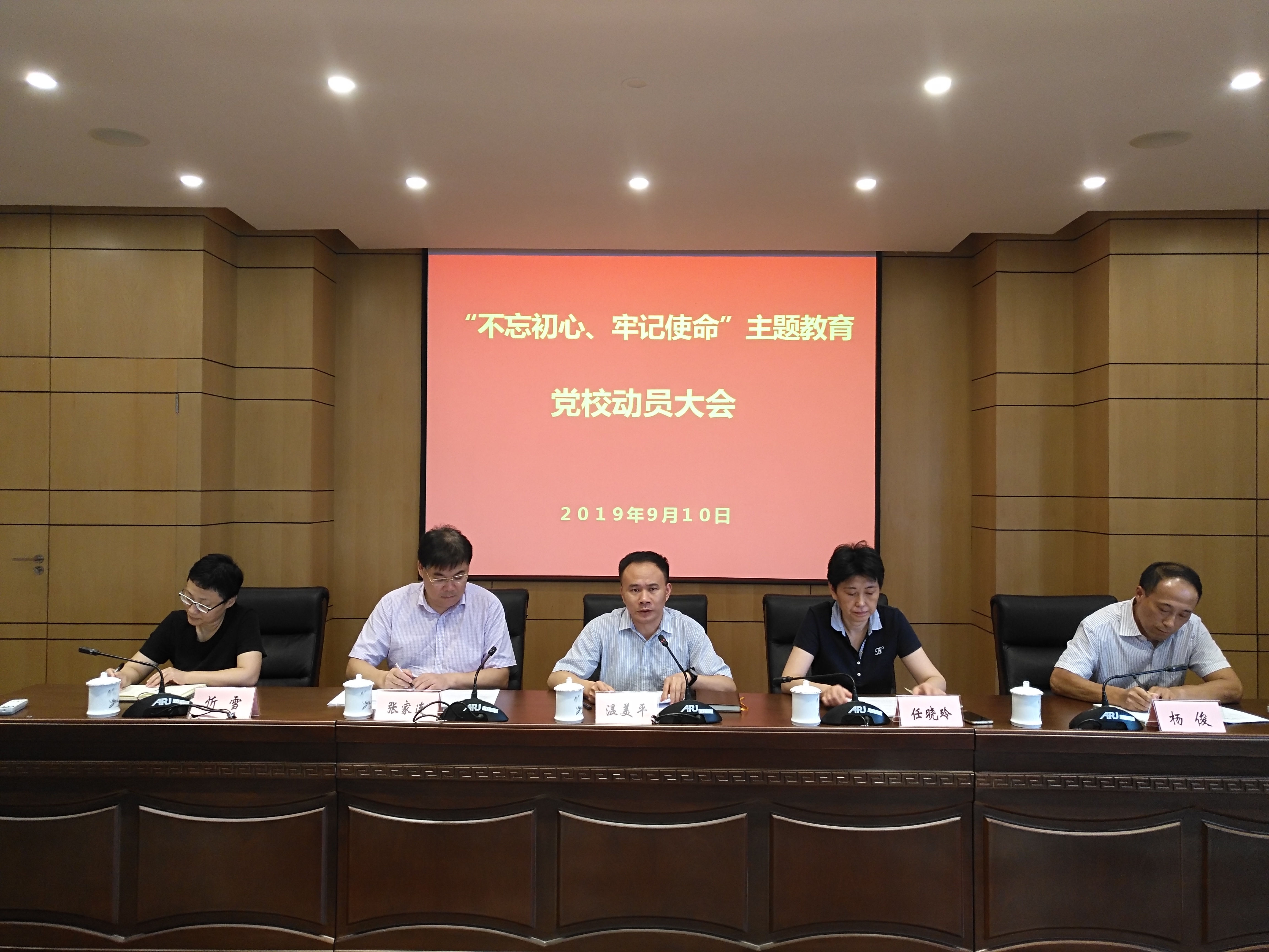 本网讯 9月10日下午,虹口区委党校召开“不忘初心、牢记使命”主题教育动员会,虹口区委第三指导组组长任晓玲、副组长张家连出席,常务副校长温美平作动员讲话,副校长杨俊主持,党校全体教职工参加。