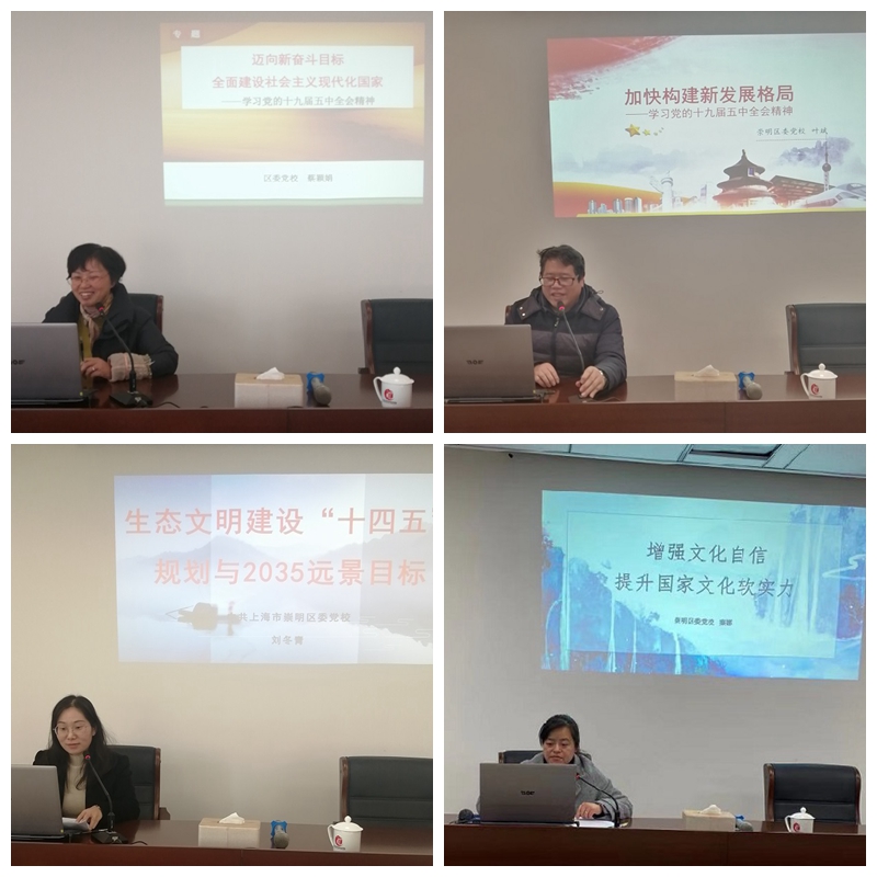 试讲活动通过“提纲分享、教师讲授、交流互评、领导点评”四个环节有序推进,教师从党的十九届五中全会精神总讲、分论等不同角度选题讲授,既能原原本本对全会精神进行阐释,又能紧扣崇明世界级生态岛建设实际谋篇布局,做到了理论联系实际,通俗易懂接地气。