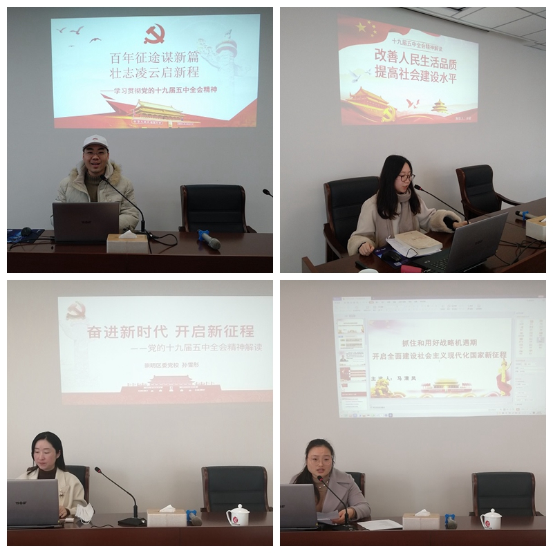 本网讯 为贯彻落实党的十九届五中全会精神,发挥党校理论宣传主阵地作用,12月9日,崇明区委党校举行党的十九届五中全会精神专题试讲活动,副校长李尧新出席并点评,教研室主任张林主持,全体专职教师参加。