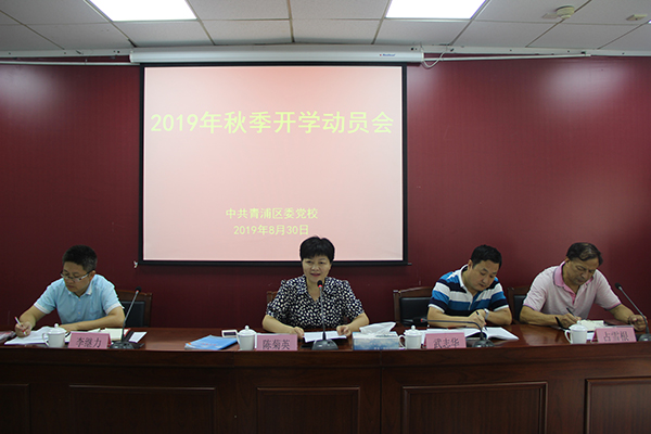 本网讯 8月30日,青浦区委党校召开2019年秋季开学动员会,常务副校长陈菊英主持,全体教职工参加。