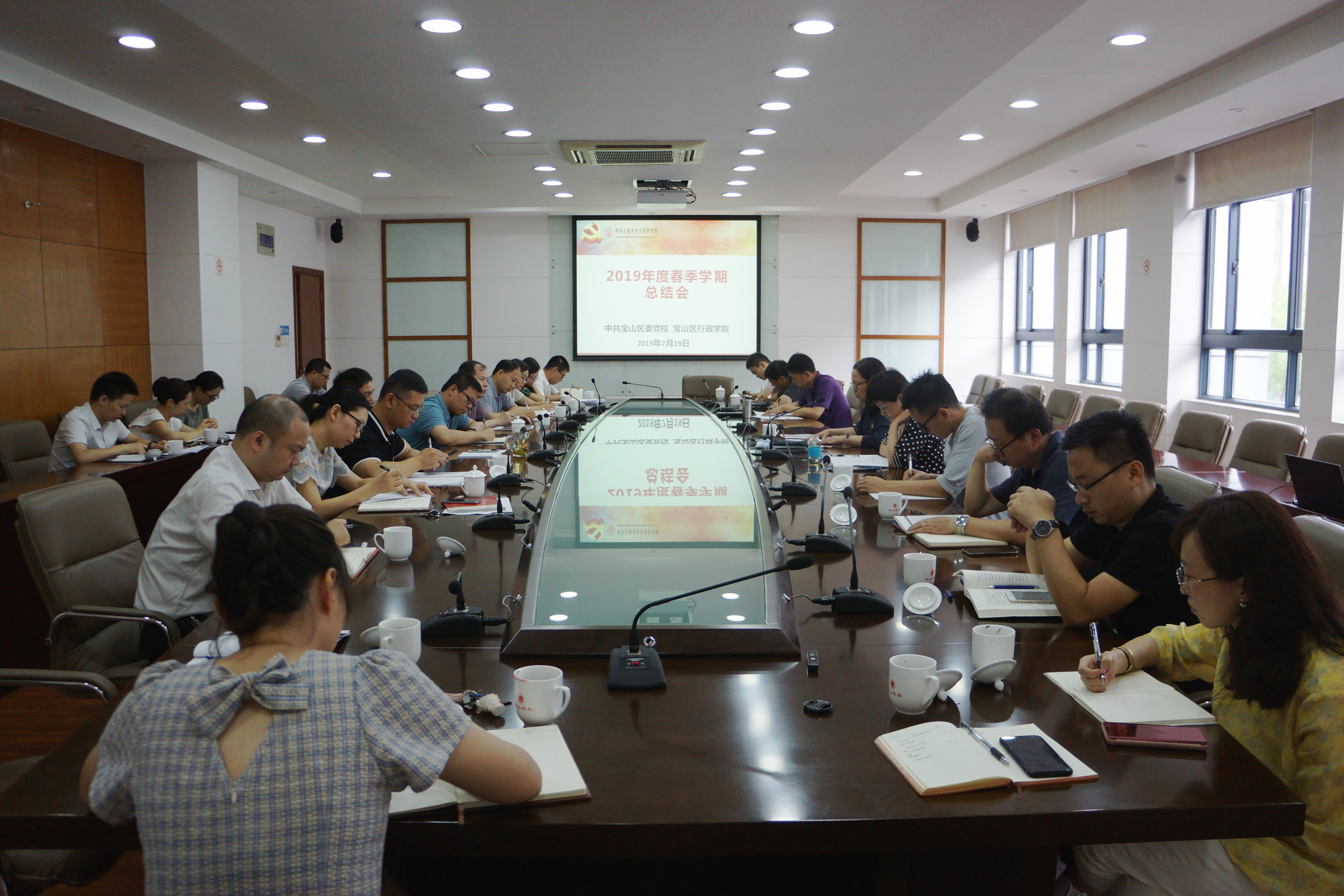 7月19日,宝山区委党校召开2019年春季学期总结会,常务副校长朱少雯作春季学期总结,全体教职工参加。
