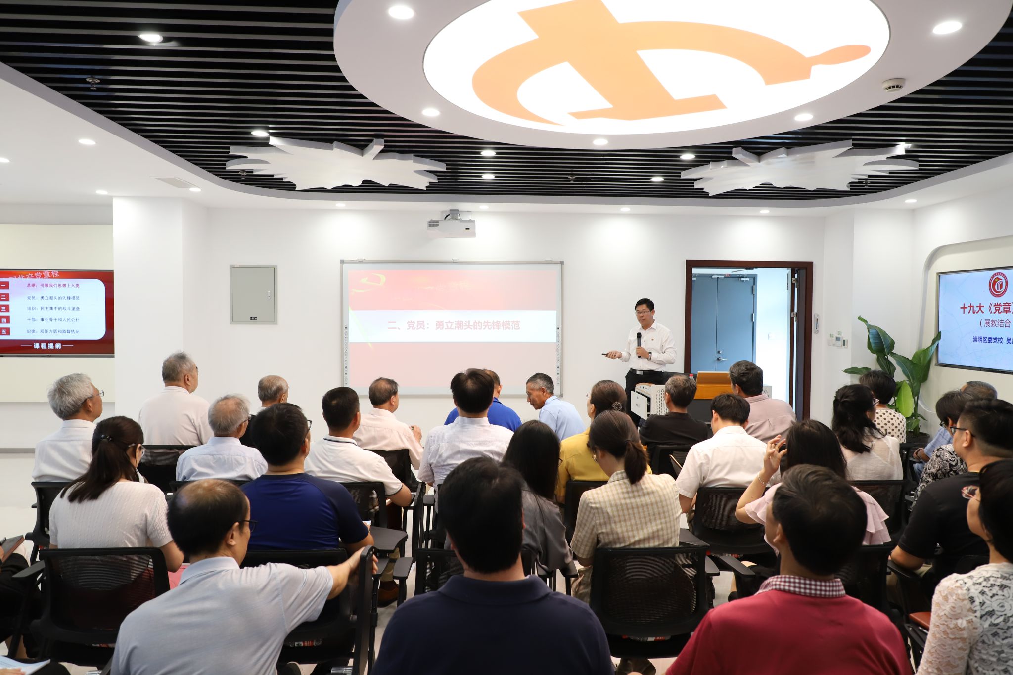 崇明区委党校党支部联合退休党支部共同开展“红色熔炉”党史学习教育读书班活动,聆听了崇明区委党校吴广升老师作《十九大导读》,帮助增强全体党员学习贯彻党章的政治自觉和行动自觉,进一步强化初心使命、坚定政治信仰。