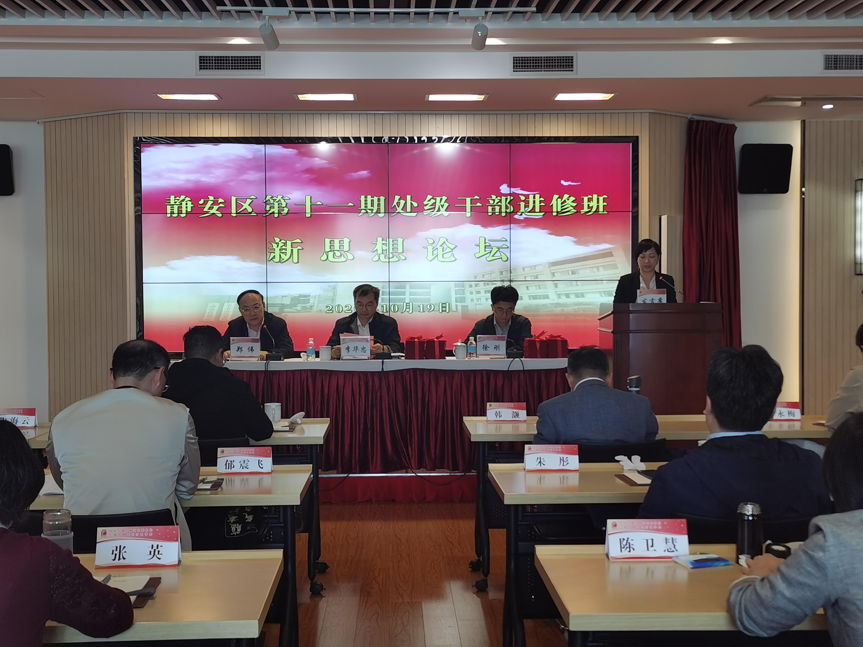 本网讯 10月19日下午,静安区第十一期处级干部进修班结业仪式在区委党校举行。陈靖宇、杨烨、张纬臣、王茜、章敏浩、陈畅、朱凤和严布衣等8位学员在“新思想论坛”上作了交流发言。静安区委党校常务副校长徐刚主持,区委组织部副部长李华忠出席并讲话。