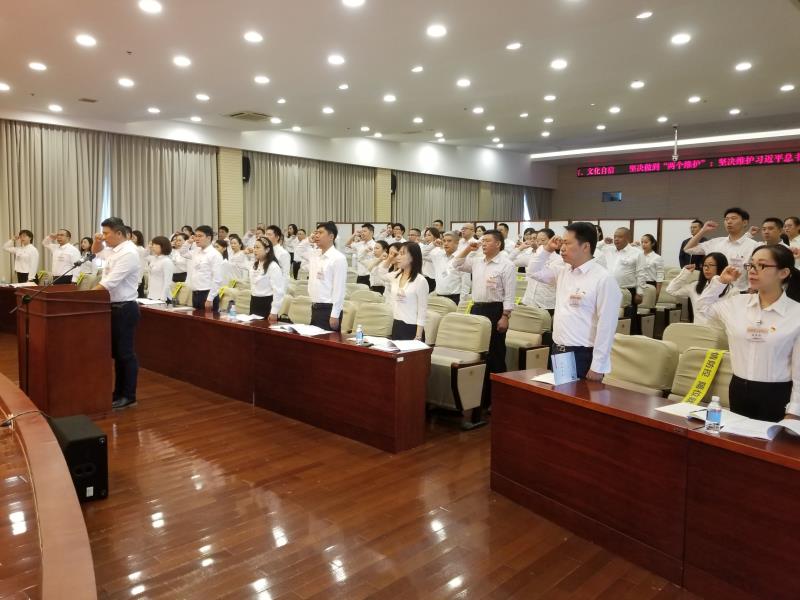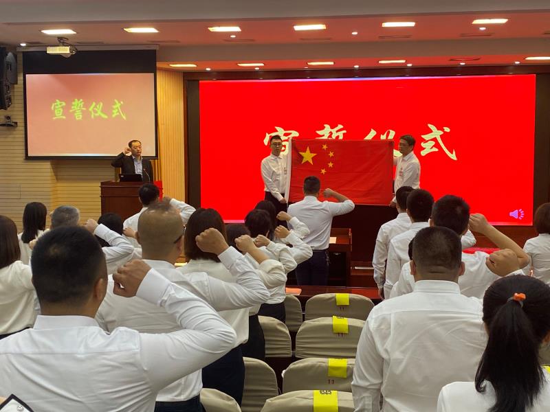 会上举行了入职宣誓仪式,领誓人手抚宪法,领诵誓词,吕平监誓,全体学员面向国旗庄严宣誓。
