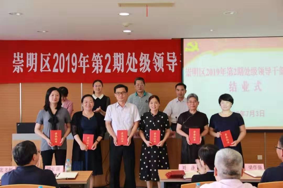 本网讯 7月3日下午,崇明区2019年第2期处级领导干部轮训班在区会议中心举行结业式。区委党校常务副校长宋佩娟、区委组织部跟班辅导员陆汉涛、区委编办副主任、区委组织部干部科科长龚胜瑜出席,结业式由区委党校副校长李尧新主持。
