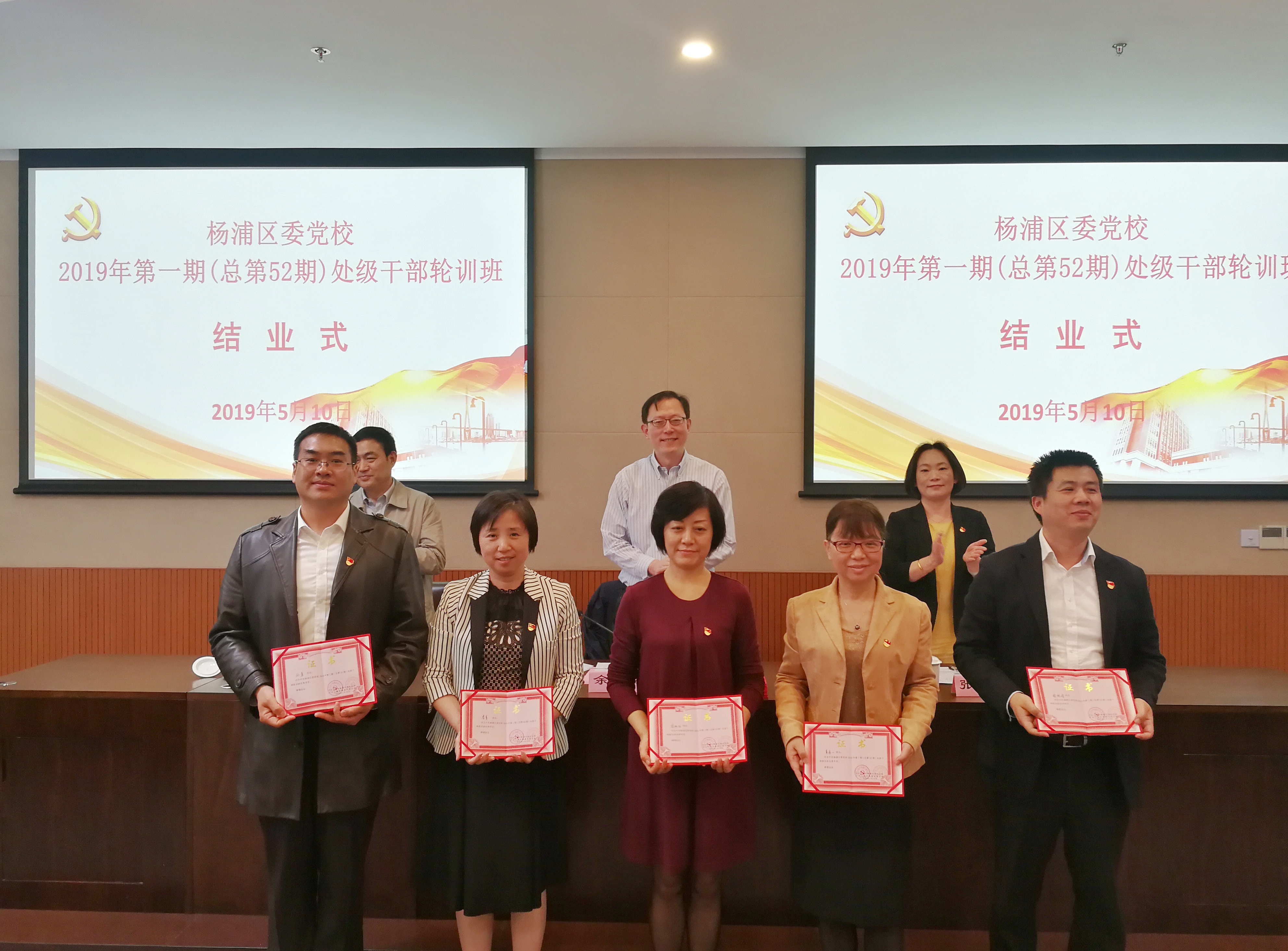 本网讯 5月10日下午,为期一个月的杨浦区2019年第1期(总第52期)处级干部轮训班在杨浦区委党校举行结业式。杨浦区委组织部副部长、区编办主任余翔,轮训班组织员王继烈出席结业式,杨浦区委党校常务副校长张莉主持。