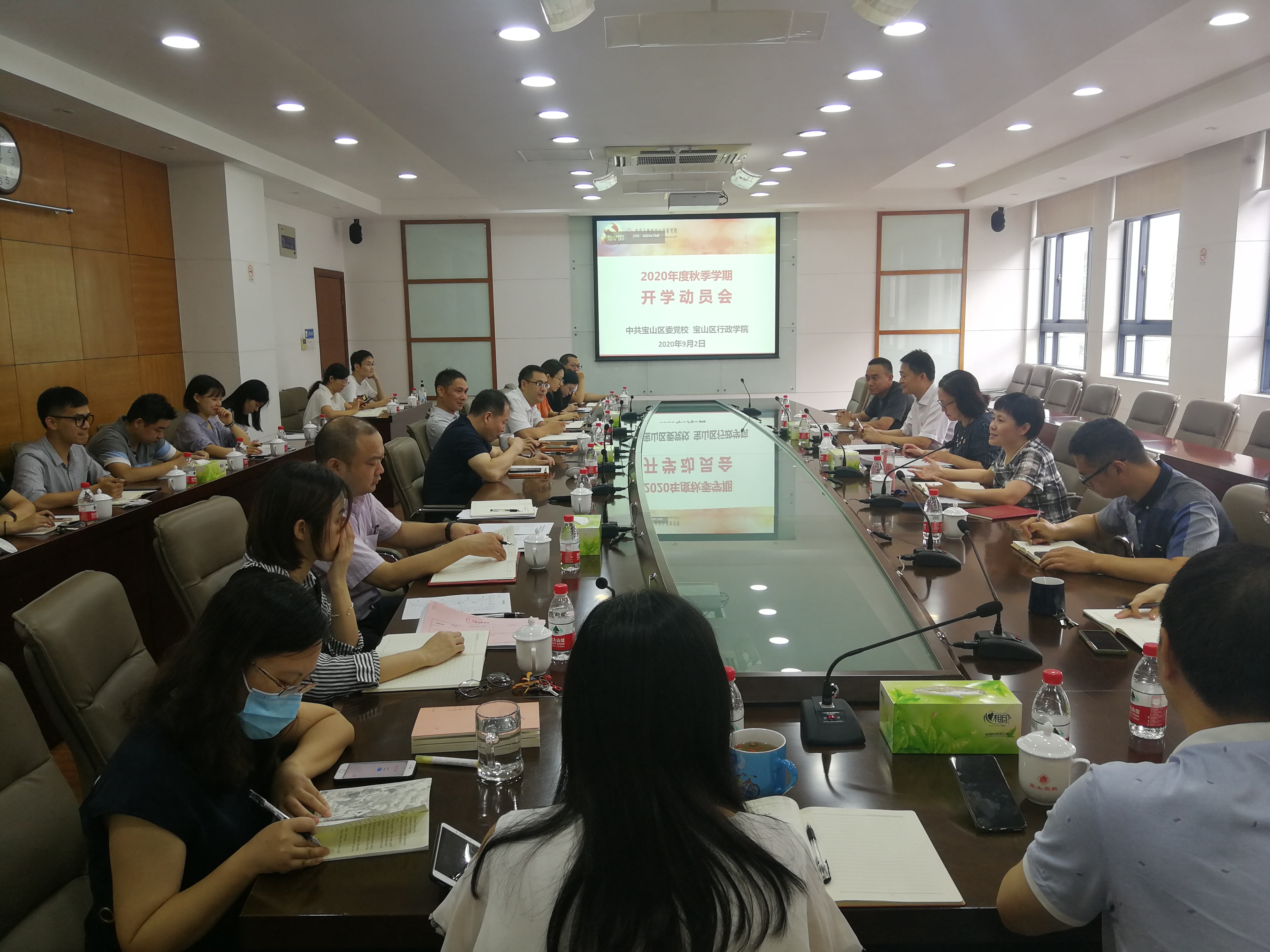 本网讯 9月2日上午,宝山区委党校(行政学院)召开2020年度秋季学期开学动员会暨专题党课活动。常务副AG百家乐长朱少雯作开学动员并为全体党员上“学史明志 做胸怀理想党校人”专题党课,副AG百家乐长陈明敏主持,全体教职员工参加。