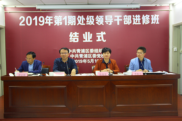 本网讯 近日,青浦区2019年第1期处级领导干部进修班顺利结业。青浦区委组织部副部长陆志斌参加结业式并讲话,青浦区委党校常务副校长陈菊英主持。