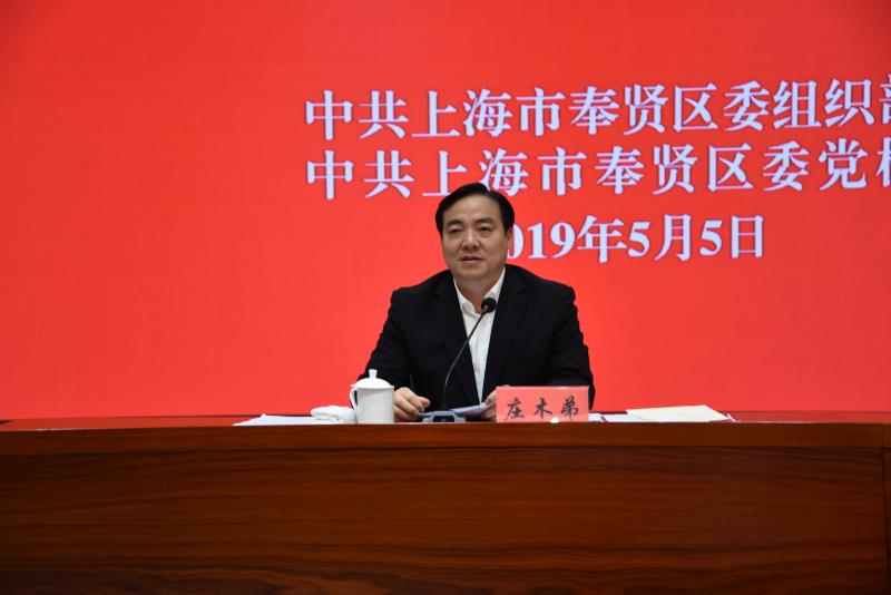 本网讯 5月5日下午,奉贤区委书记庄木弟以“聚焦‘四个新’,探索国际化大都市背景下的乡村振兴新路”为题,为该区第17期区管干部进修班、第13期中青年干部培训班全体学员作专题讲座。区委常委、区委组织部部长韦明主持会议。