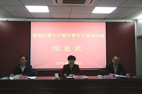 本网讯 5月8日上午,青浦区第16期中青年干部培训班顺利结业。区委党校常务副校长陈菊英出席结业式并作培训小结,区委副处级组织员、区委组织部干部科科长黄励峰主持,中青班组织员蒋金坤参加。