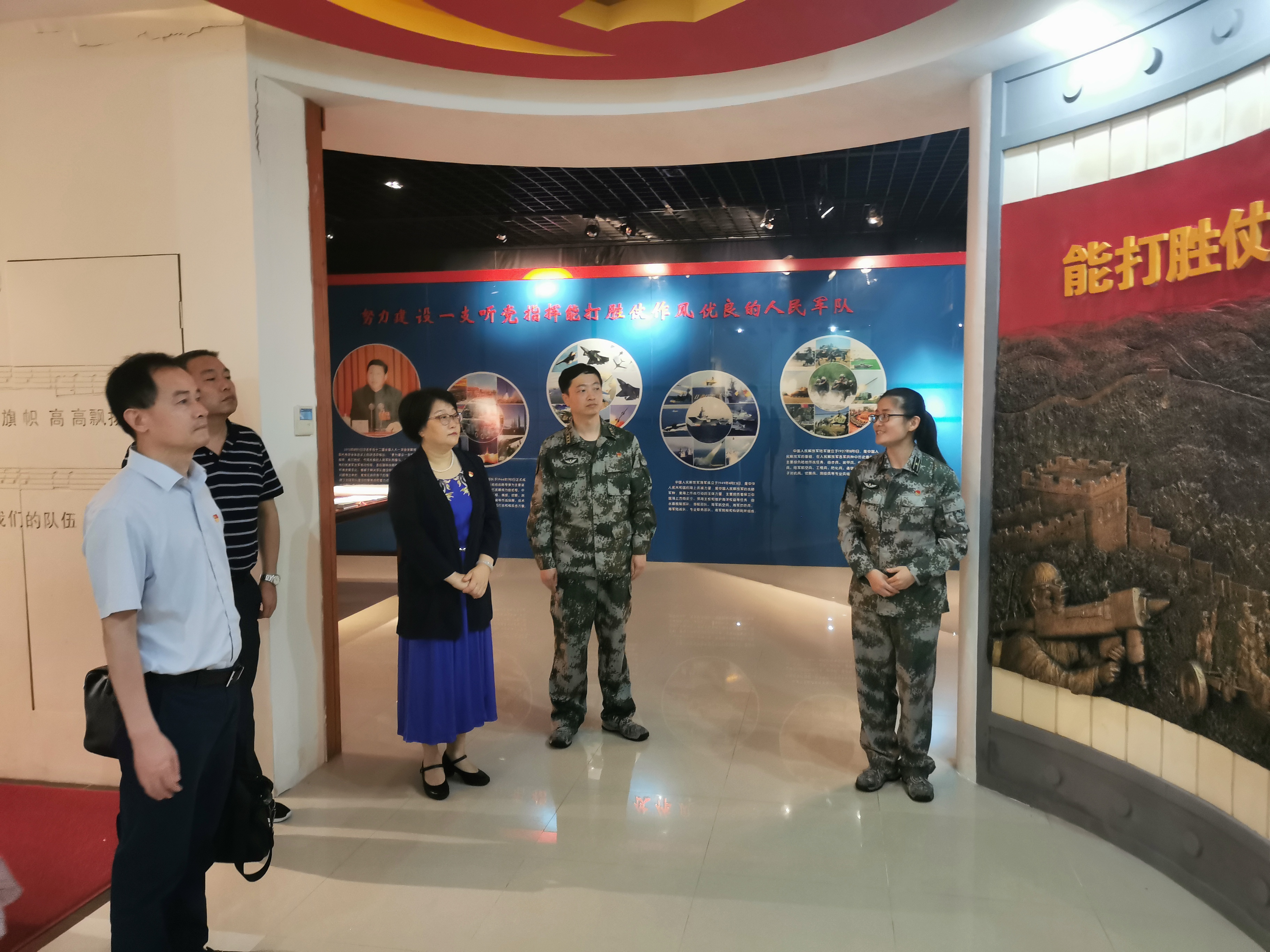 在五团领导的陪同下,大家参观了五团团史馆“长城园”,认真聆听讲解,仔细端详每一件展品,从重温五团建军史中,汲取历史力量。参观后,双方就在“四史”学习中的体会感悟开展了互动交流。王秋萍对下一步继续做好双拥共建工作提出设想与希望。双方领导表示这次活动非常有意义,不仅增进了双方的共建情谊,也是区委党校“四史”进军营的良好开端。