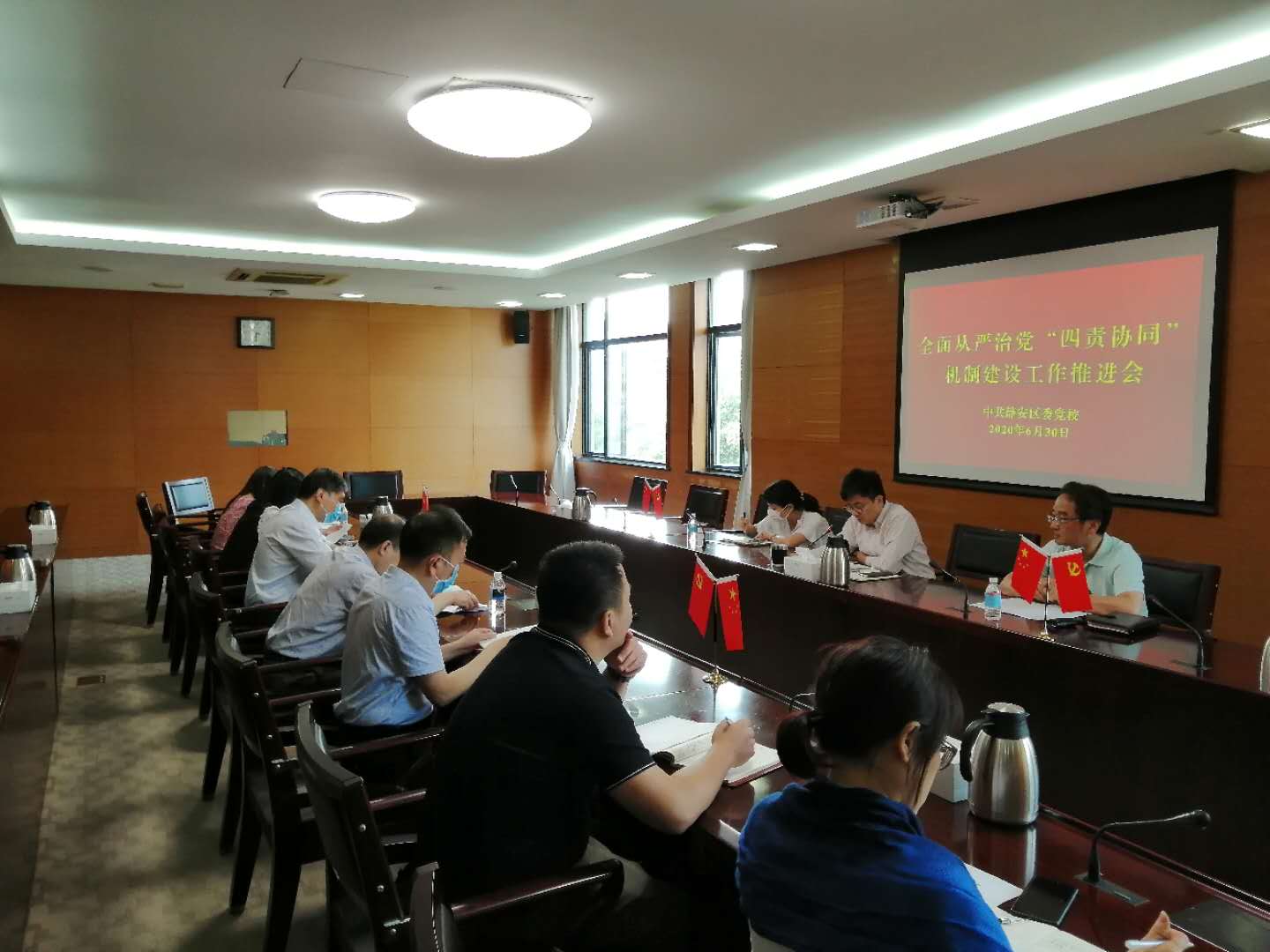 召开中层及以上干部会议,推进“四责协同”机制建设。6月30日下午,静安区委党校召开全面从严治党“四责协同”机制建设工作推进会,贯彻落实静安区全面从严治党“四责协同”机制建设推进会精神,副科职以上领导干部共12人参加。与会人员依次宣读了《党风廉政建设责任承诺书》,公开作出郑重承诺,接受监督。徐刚要求,要落实好责任清单制度,做到有权就有责、权责要对等;要做到纵向压力传导,责任层层传递,有效落实;要做到协同运作,推动全面从严治党从“一家做”到“大家做”,从“要我做”到“我要做”。