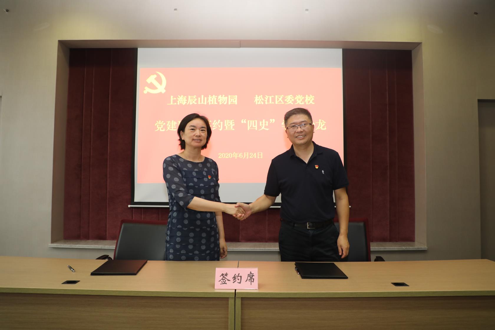 本网讯 为进一步加强党员干部“四史”学习教育,6月23日,松江区委党校同上海辰山植物园开展党建联建活动。松江区委党校党总支副书记、副校长刘凤强和上海辰山植物园党委书记吉琴作为双方代表签署了党建联建协议。松江区委党校副校长荀宁军,辰山植物园园长胡永红、纪委书记王琳出席签约仪式。