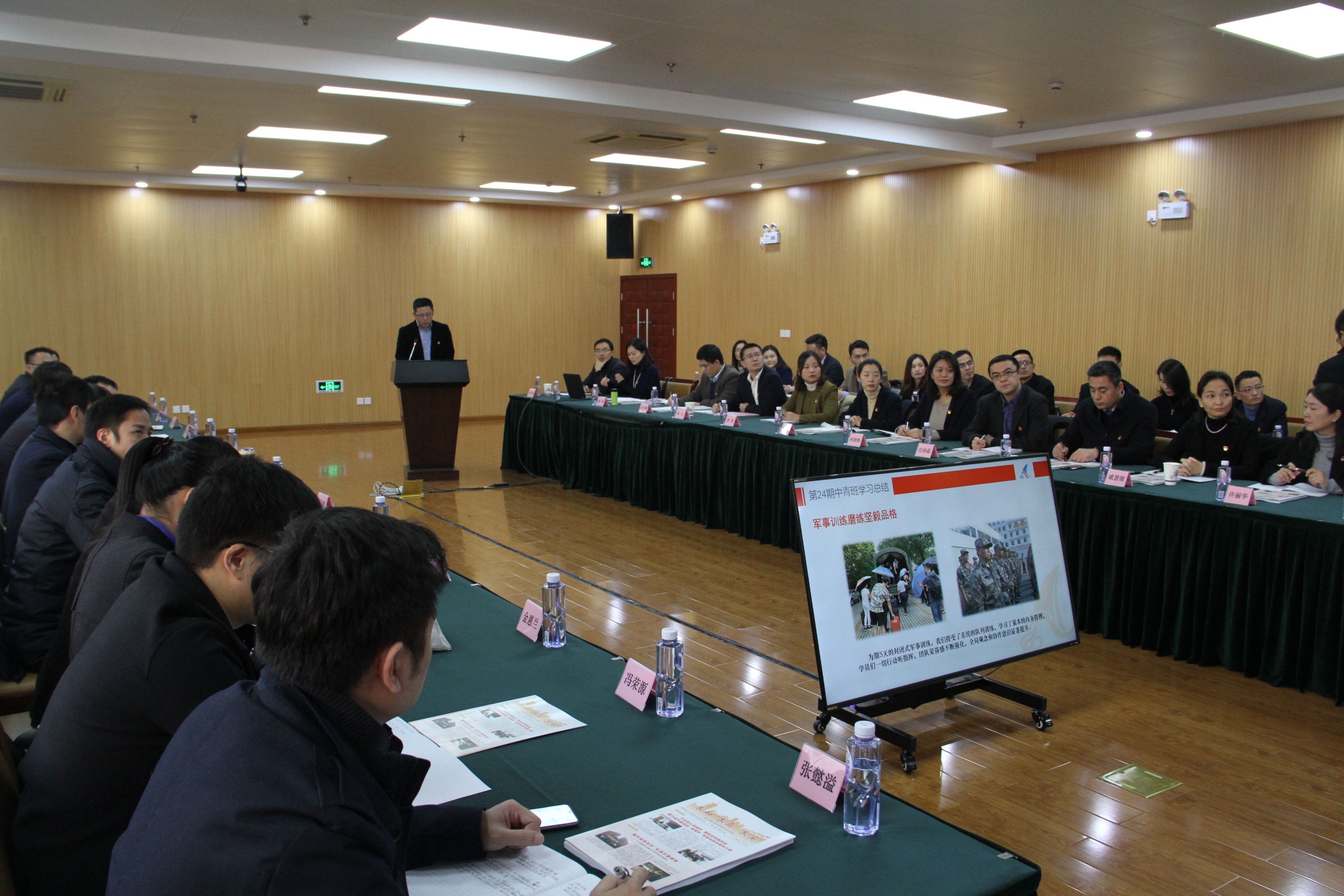 典礼上播放了《第24期中青班成长手册》专题回顾短片,总结了培训班学习情况,表彰了优秀学员和优秀课题,并作了社会调研成果展示及交流发言。(摄影:徐超)