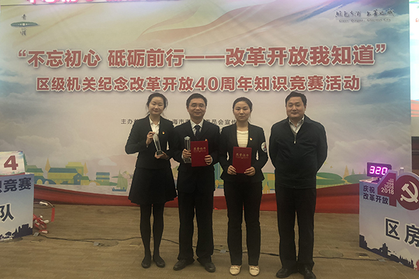 本网讯 近日,由青浦区委宣传部、区级机关党工委以及区史志办联合举办的“不忘初心·砥砺前行——改革开放我知道”区级机关纪念改革开放40周年知识竞赛决赛在青浦区委党校二楼会议厅举行。青浦区委党校代表队在本次竞赛中获二等奖,陈建锋荣获“学习先锋奖”。