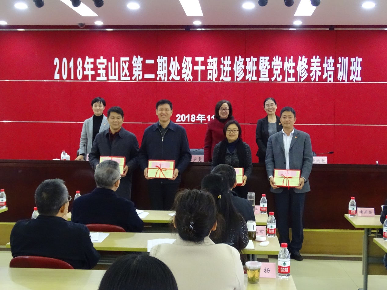 本网讯 日前,宝山区2018年第二期处级干部进修班暨党性修养培训班结业式在宝山区委党校举行。区委党校常务副校长朱少雯作总结,副校长陈明敏主持,培训班全体学员、区委组织部、区委党校相关部门负责同志约80人参加结业式。