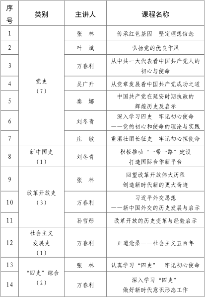本网讯 学好“四史”是牢记党的初心和使命的重要途径,是党员的一门重要必修课。为助推全区党员干部学好用好历史,筑牢初心使命根基,崇明区委党校把“四史”作为理论教育、党性教育的重要内容,组织全体教师开发完善“四史”专题课程,现公布第一批“四史”学习教育专题课程清单:
