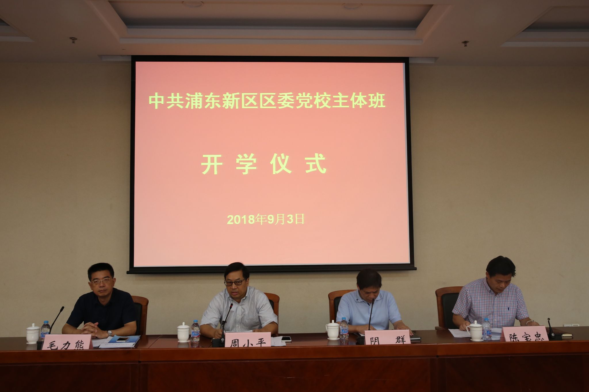 区委党校副校长毛力熊宣布成立主体班临时党支部的决定及主体班联络员、班主任名单。区委党校副校长阴群、毛力熊和陈宝忠出席开学仪式。浦东党校第22期领导干部研修班、第37期干部读书班、第56期干部轮训班及第31期青年干部培训班全体学员参加。