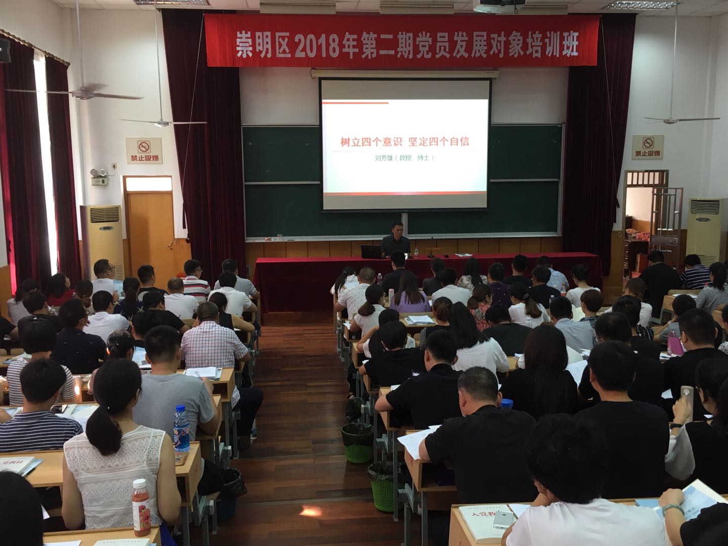 本网讯 崇明区2018年第二期党员发展对象培训班于9月3日至9月7日举办,来自各乡镇委局、公司园区的 32个党(工)委的175名学员参训。此次培训班以学习贯彻党的十九大精神为主线,重点学习《党章》《关于新形势下党内政治生活的若干准则》以及“学习十九大精神,坚定不移推进全面从严治党”等专题课,帮助学员牢固树立“四个意识”,坚定“四个自信”。