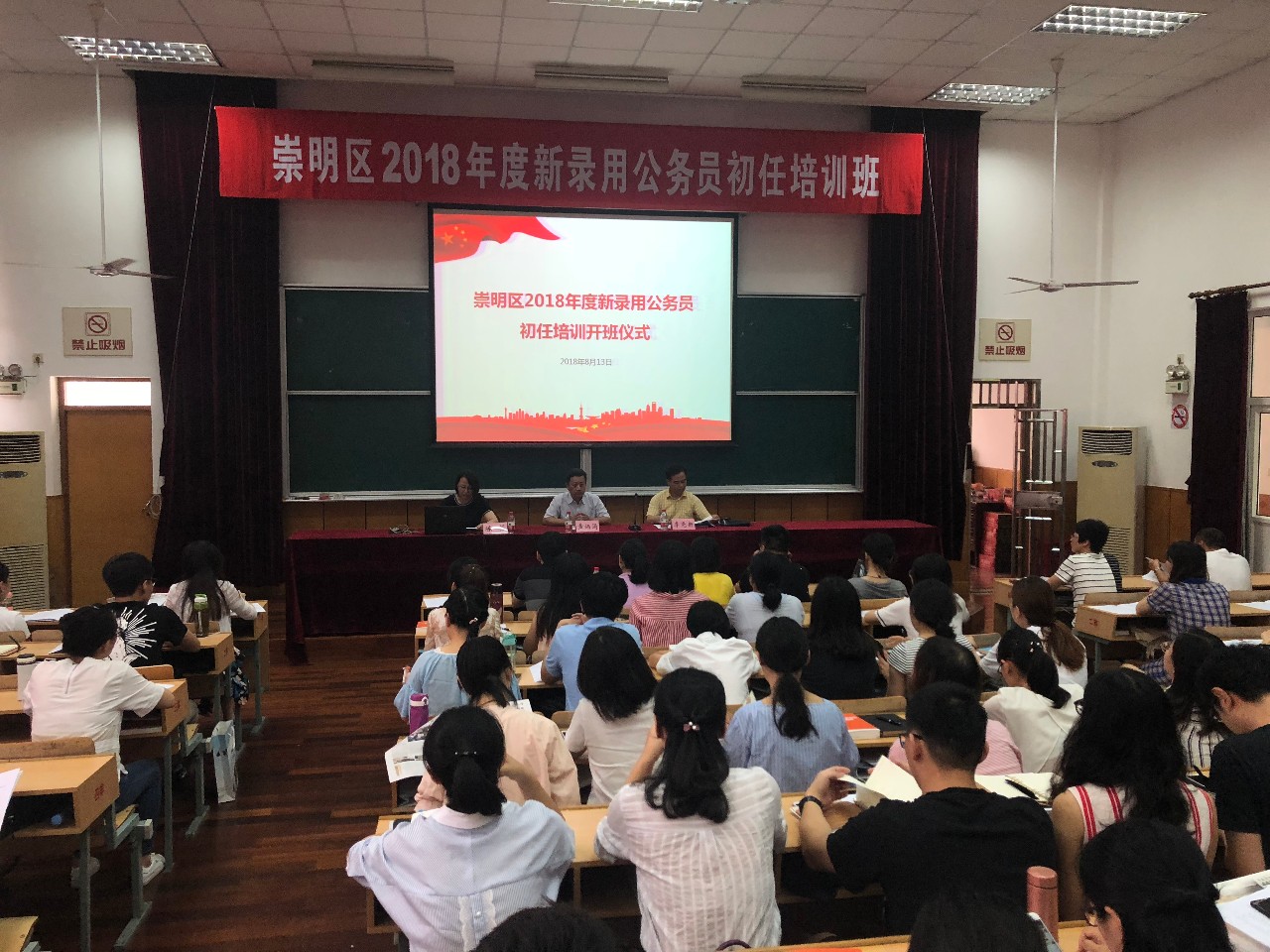 本网讯 8月13日上午,由崇明区公务员局和崇明区委党校(崇明区行政学院)联合举办的崇明区2018年度新录用公务员初任培训班在党校报告厅举行开班仪式。市干部培训中心公务员培训部部长黄炳涌、崇明党校副校长李尧新出席并讲话。