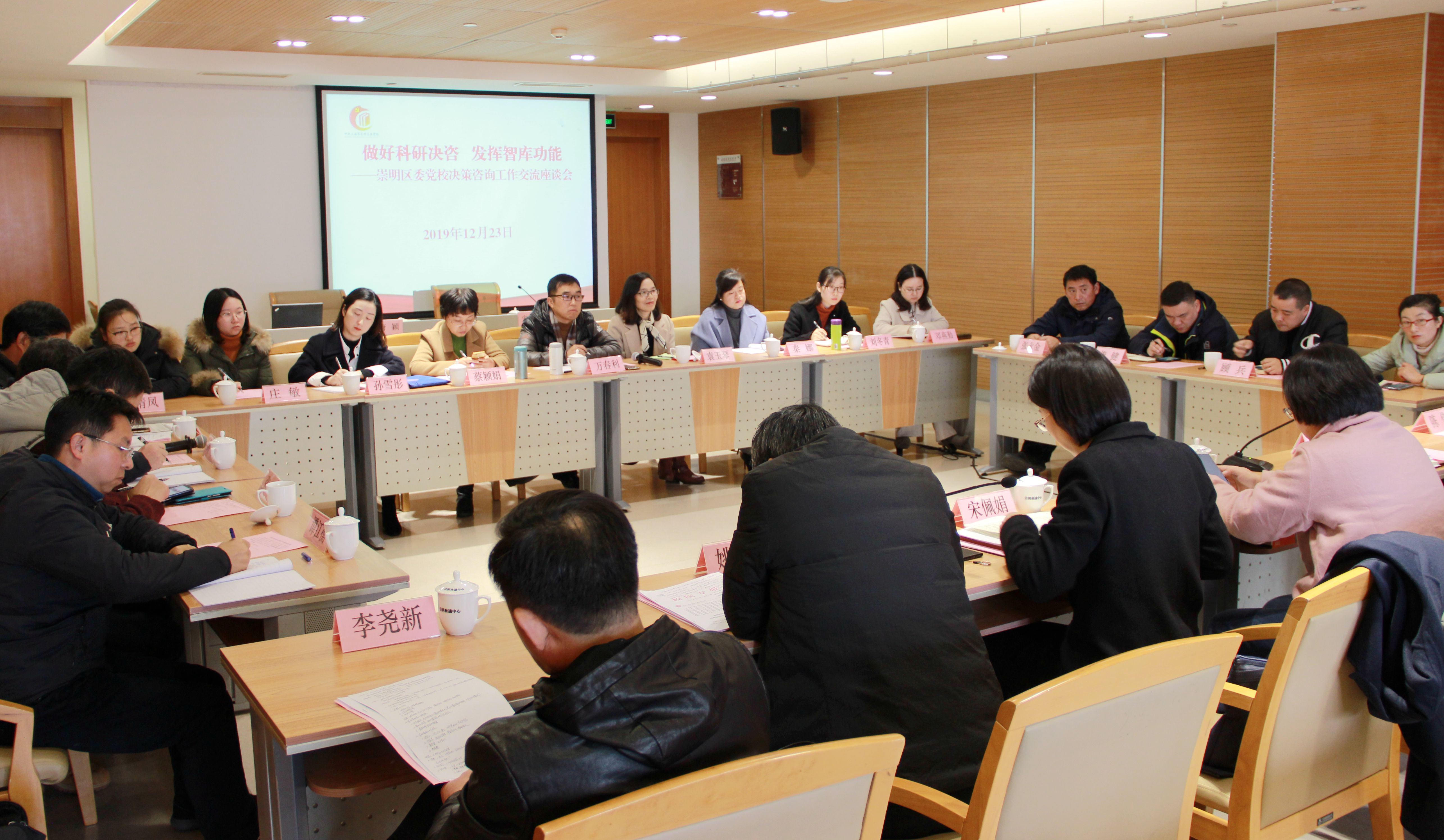 本网讯 为贯彻落实《中国共产党党校(行政学院)工作条例》精神,有效提升崇明区委党校科研决咨能力,更好发挥新时代党校智库功能,更高质量地为崇明区委区政府中心工作提供决策咨询服务,12月23日上午,崇明区委党校在区会议中心415室举办科研决咨交流座谈会。市委党校决策咨询部主任唐颖,区人大常委会研究室主任沈学能,区政协副秘书长、研究室主任姚安宝,区委研究室副主任陈伟出席会议,区委党校常务副校长宋佩娟主持会议。
