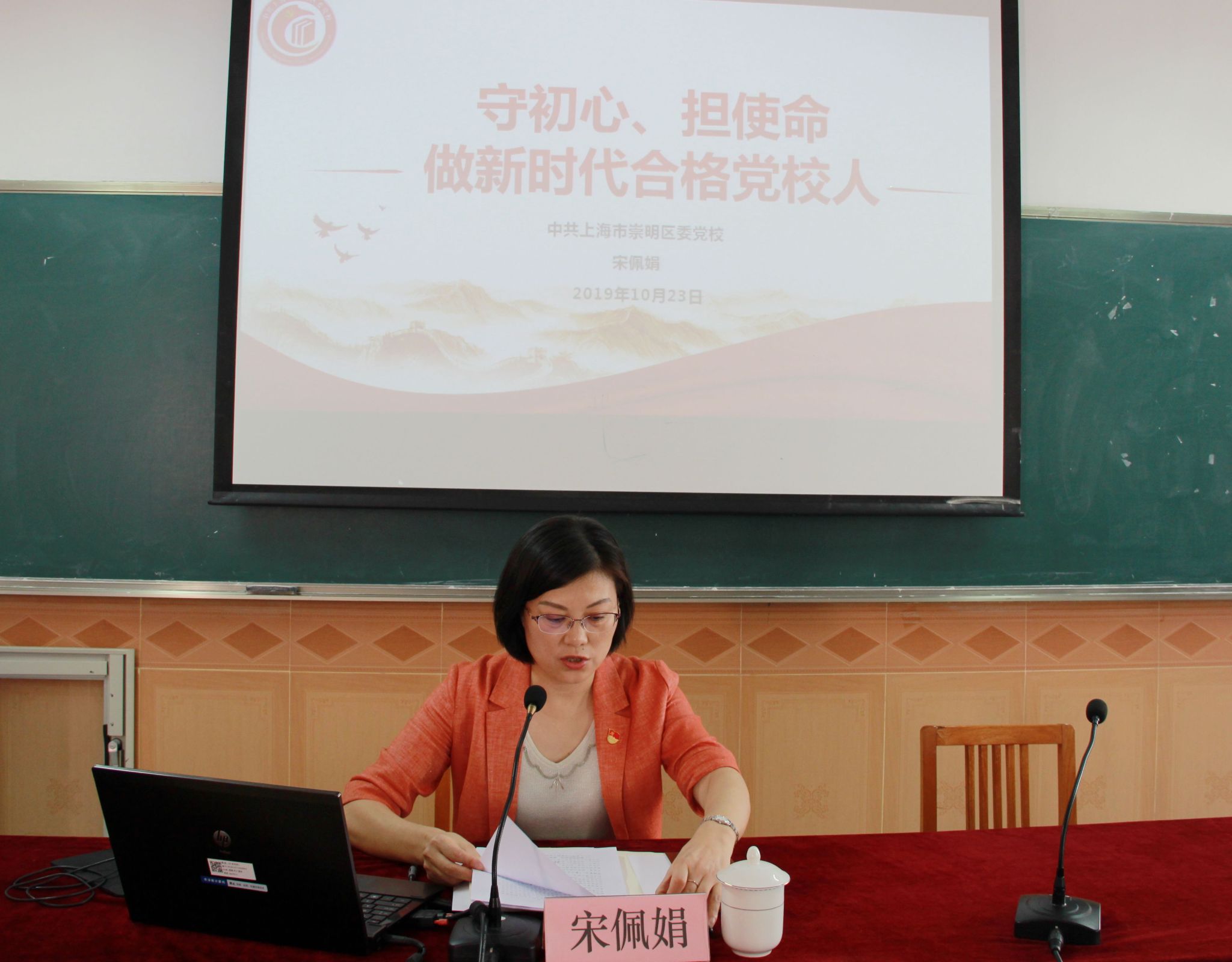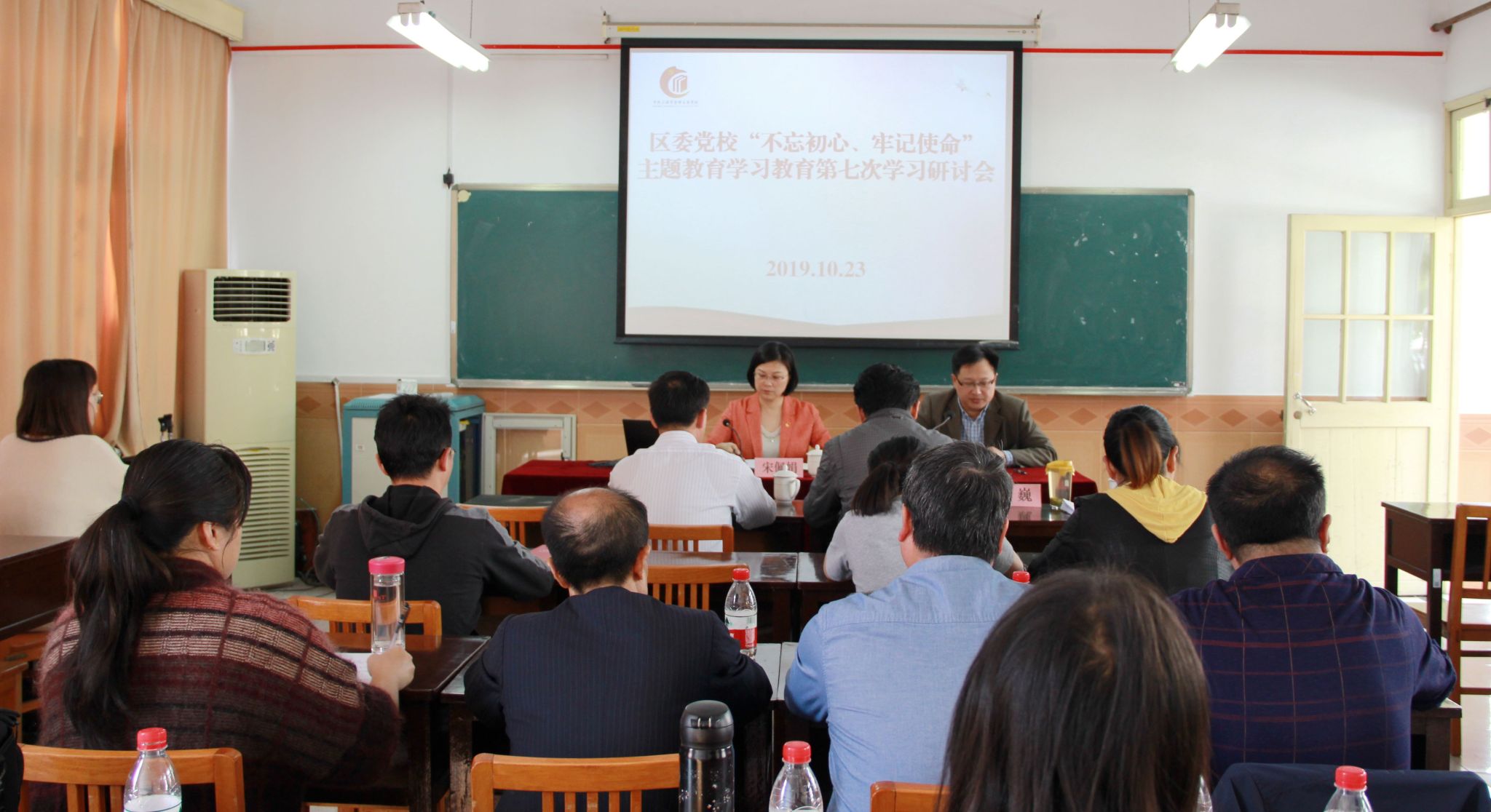 本网讯 按照崇明区委“不忘初心、牢记使命”主题教育工作要求,10月23日下午,崇明区委党校召开“不忘初心、牢记使命”主题教育第七次学习研讨会,常务副校长宋佩娟上专题党课,区委主题教育指导组曲冠华同志莅临指导,副校长胡巍主持会议,全体教职工参加。