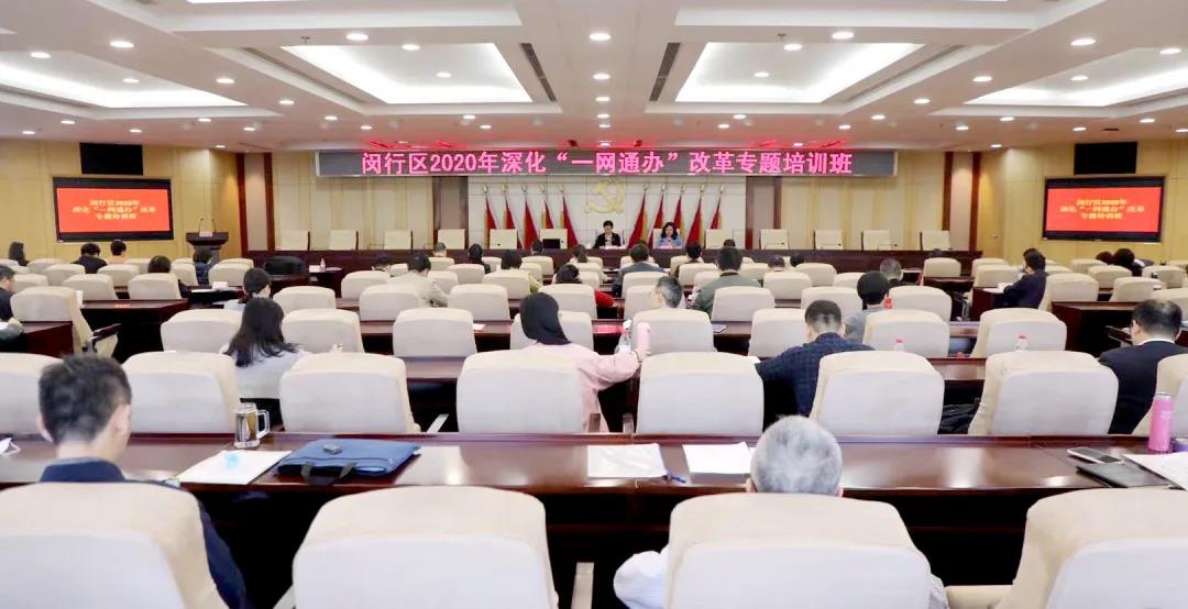 本网讯 11月19日,闵行区深化“一网通办”改革专题培训班在区委党校开班。区委常委、副区长沈军出席开班式并作动员讲话。区委党校常务副校长张英霞主持开班式。闵行区“一网通办”工作推进办公室成员单位分管领导、相关科室负责人,全区“一网通办”涉及单位分管领导、审批或窗口部门负责人等参加了本次培训班。