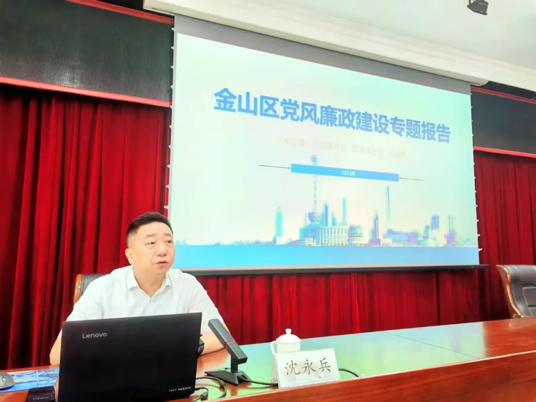 本网讯 9月19日上午,金山区委常委、区纪委书记、区监委主任沈永兵为第17期中青班学员作金山区党风廉政建设专题报告。