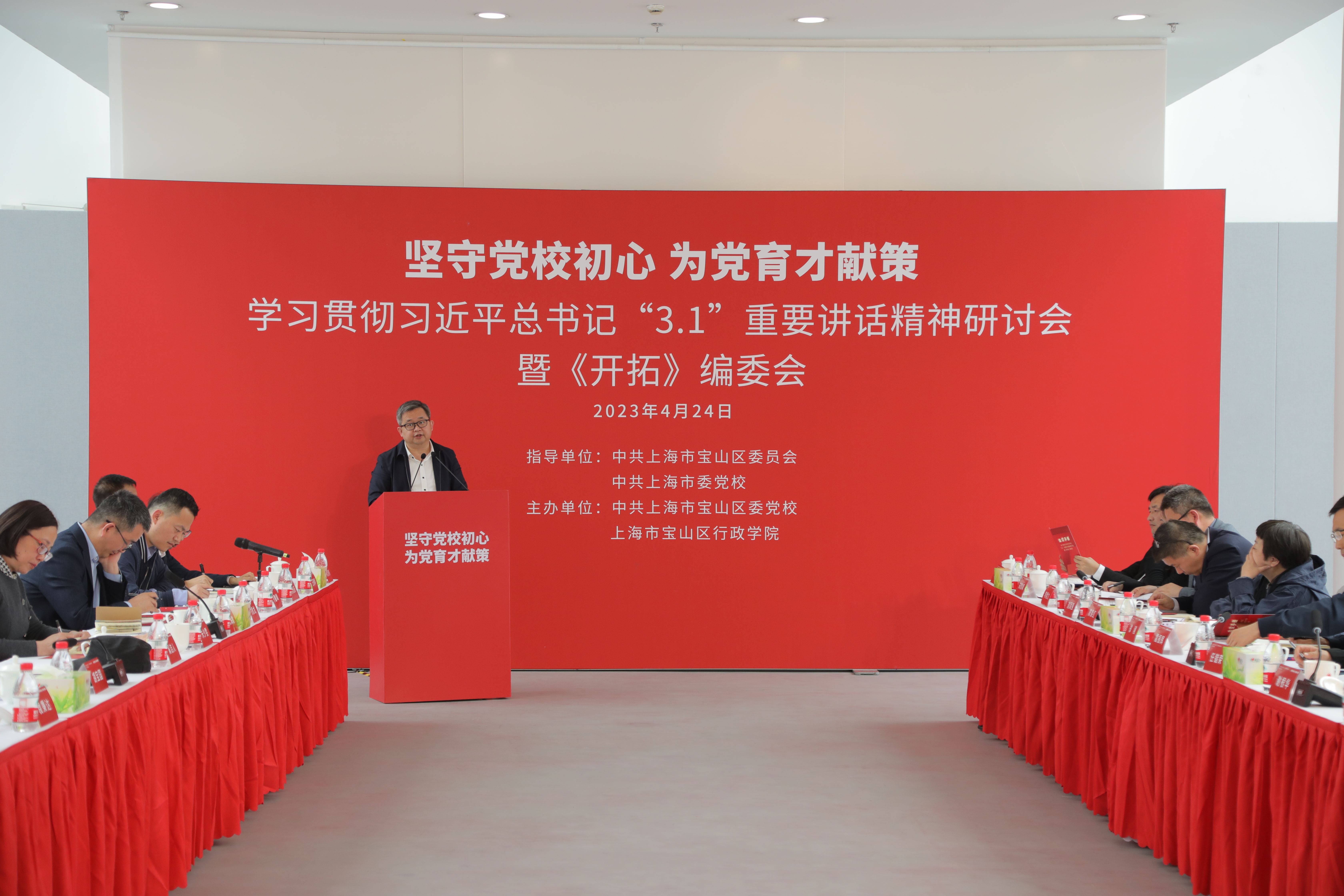 4月24日下午,“坚守党校初心 为党育才献策”学习贯彻习近平总书记“3·1”重要讲话精神研讨会暨《开拓》编委会在宝山举办。本次会议由AG百家乐官网和中共宝山区委员会指导,中共宝山区委党校主办。AG百家乐官网副校长谢根华和中共宝山区委常委、宣传部胡宝国部长出席会议并致辞。