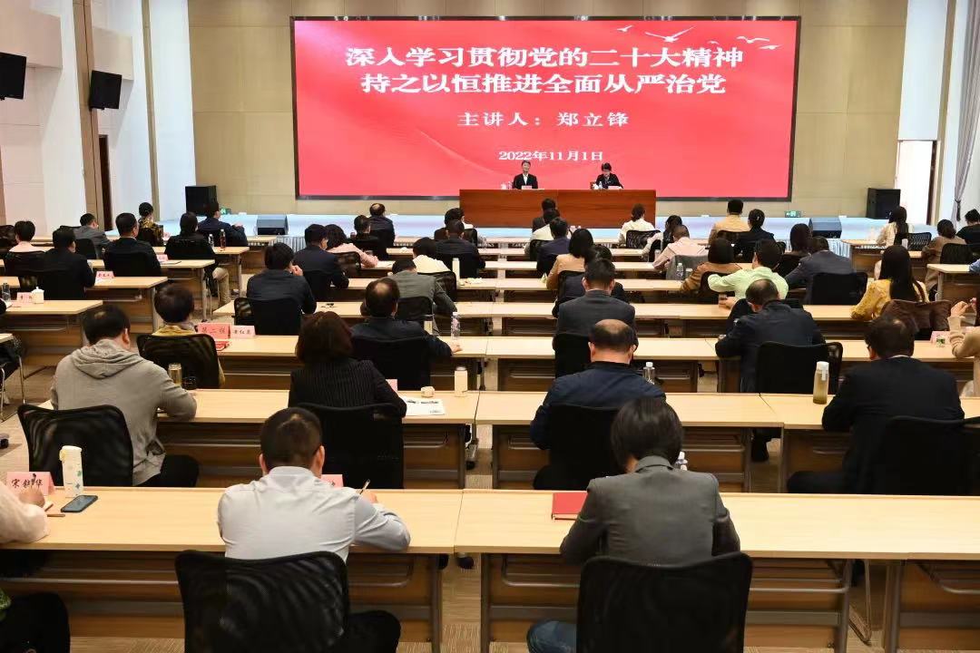 本网讯 11月1日,奉贤区委常委、区纪委书记、区监委主任郑立锋以“深入学习贯彻党的二十大精神,持之以恒推进全面从严治党”为题,为第25期区管干部培训班和新上岗干部培训班学员上廉政教育课。奉贤区委党校常务副校长王秋萍主持。