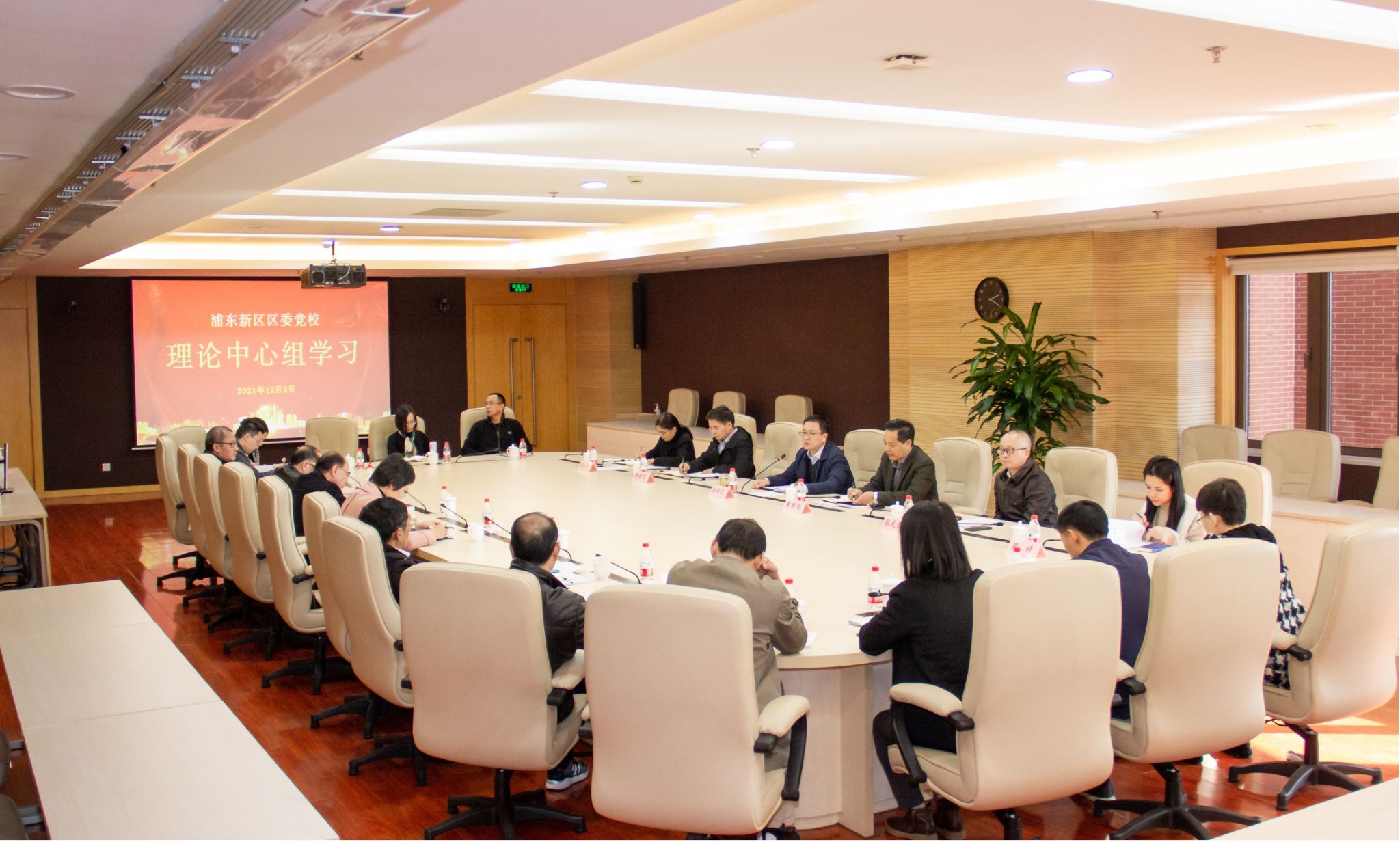 本网讯 12月2日下午,浦东新区区委党校召开理论中心组学习会,学习传达五届浦东新区区委一次全会精神,围绕“学习贯彻党的十九届六中全会精神,落实浦东新区第五次党代会任务,推动党校工作高质量发展”主题开展交流研讨。常务副校长高国忠主持会议,区委党史学习教育第二巡回指导组副组长黄新龙、指导组成员周婷到会指导,校中心组成员参加。