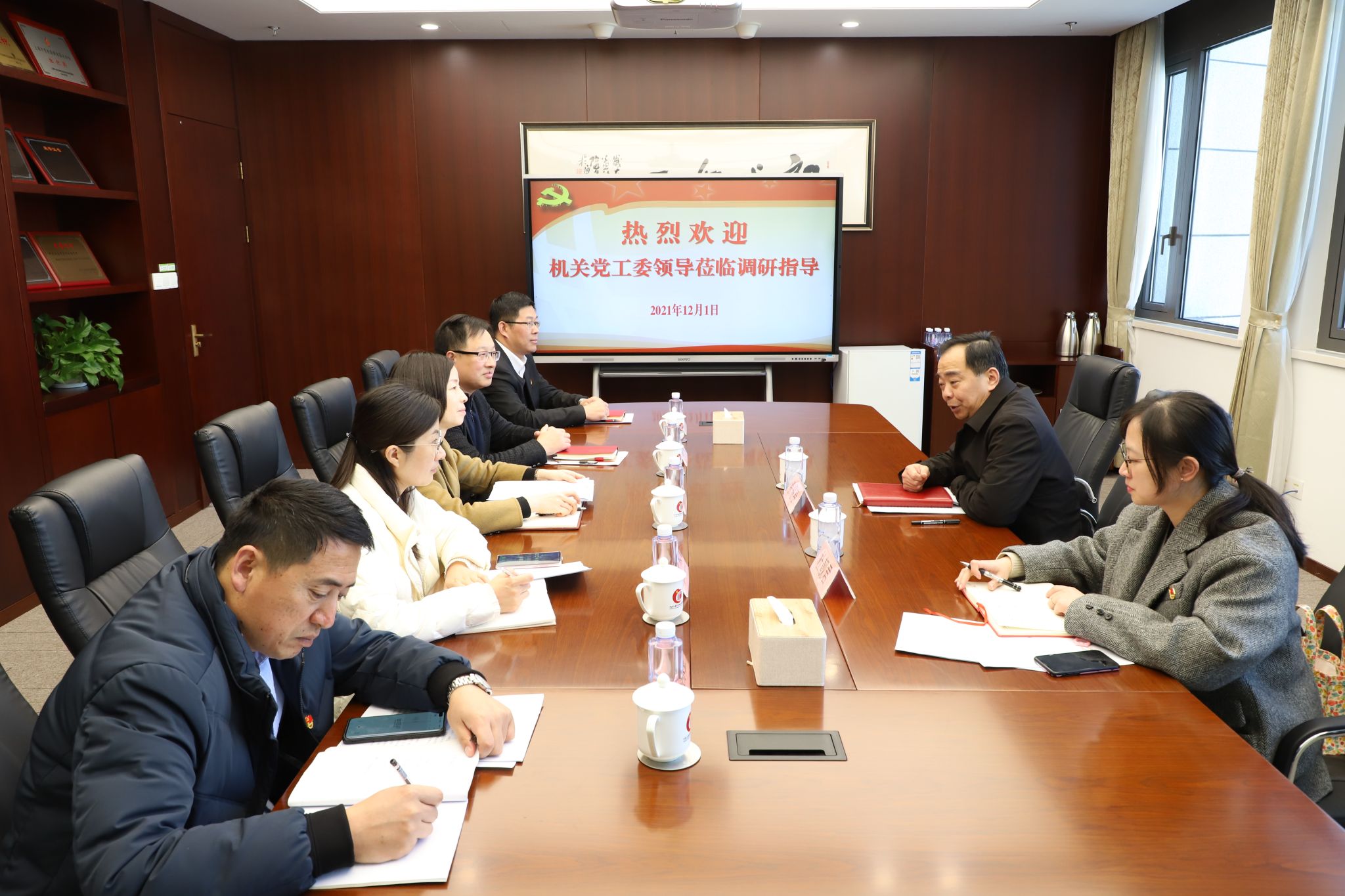 12月1日下午,崇明区区级机关工作党委书记张耀春一行来到崇明区委党校调研党建工作,区委党校常务副校长郭琰、副校长胡巍和全体支部委员参加调研。