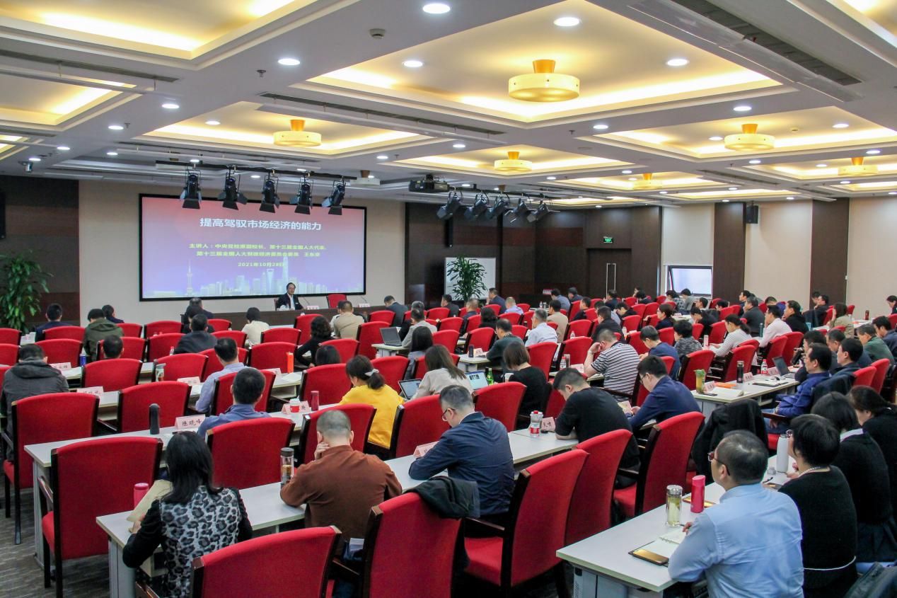 中共中央党校原副校长王东京为第二轮主体班学员作“提高驾驭市场经济的能力”主题讲座。王东京从经济学的“三个假设、三个原理、三个方法”出发,为学员们深入浅出地阐述了经济学体系。同时,从战略层面对驾驭市场经济的能力作了精彩解读。讲座视野开阔、逻辑缜密、举例生动、分析透彻,对学员深入学习贯彻落实党的十九届五中全会精神,推进浦东全面打造社会主义现代化建设引领区,努力在浦东“十四五”中开新局、抢新机、出佳绩具有很强的指导意义。讲座结束后,王东京与学员们开展了“同读一本书”的现场互动。3名学员在阅读《王东京经济学讲义》和聆听现场讲座的基础上,交流了学习体会,并就学习中存在的疑惑进行了有益探讨交流。