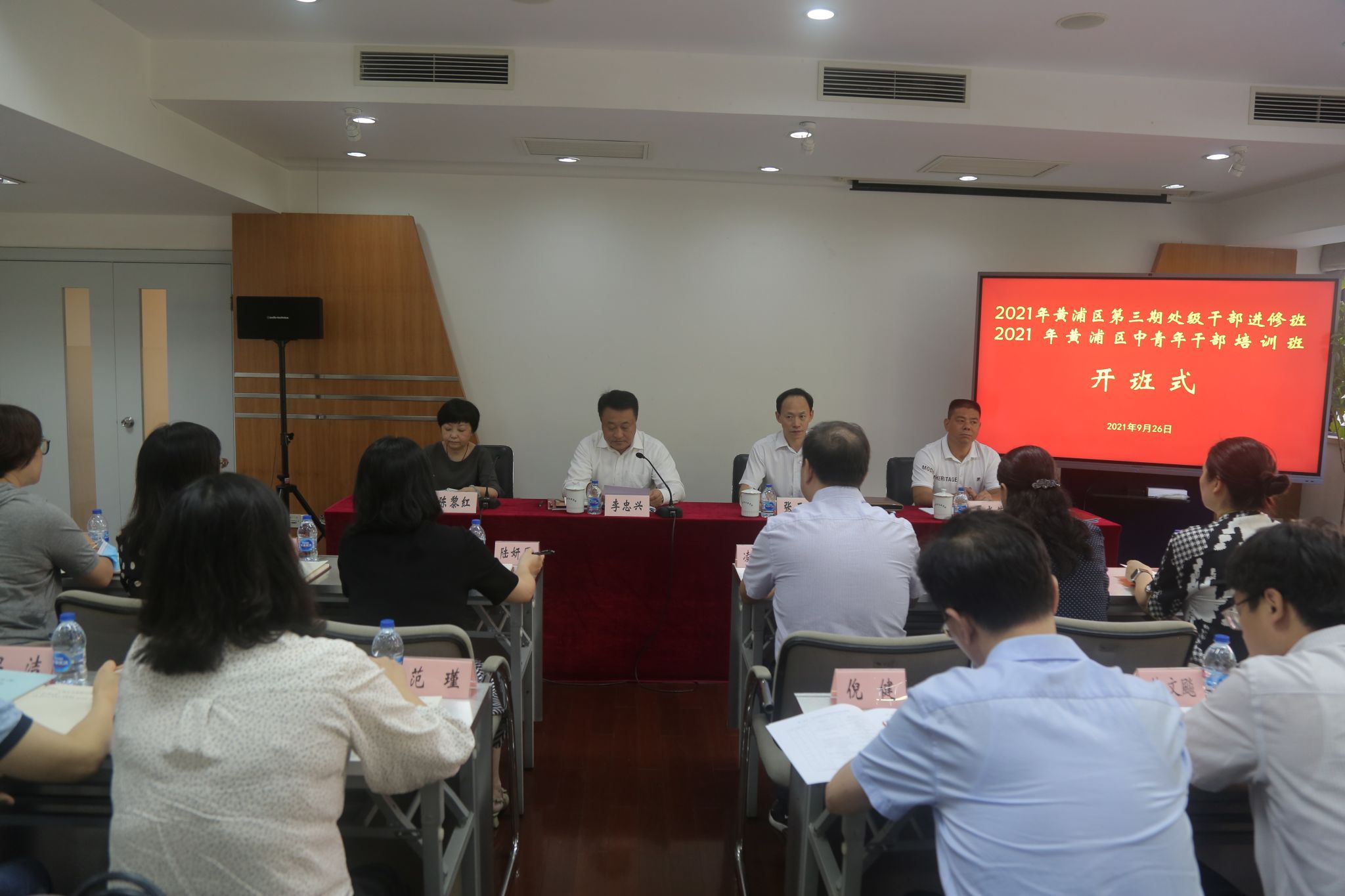 本网讯 9月26日上午,2021年黄浦区第三期处级干部进修班、中青年干部培训班开班式在区委党校(行政学院)举行。黄浦区委副书记、区委党校校长李忠兴出席开班式并作动员讲话。开班式由黄浦区委组织部副部长张正明主持。23名处级班学员、33名中青班学员和区委党校(行政学院)领导班子及各项目组成员参加开班式。