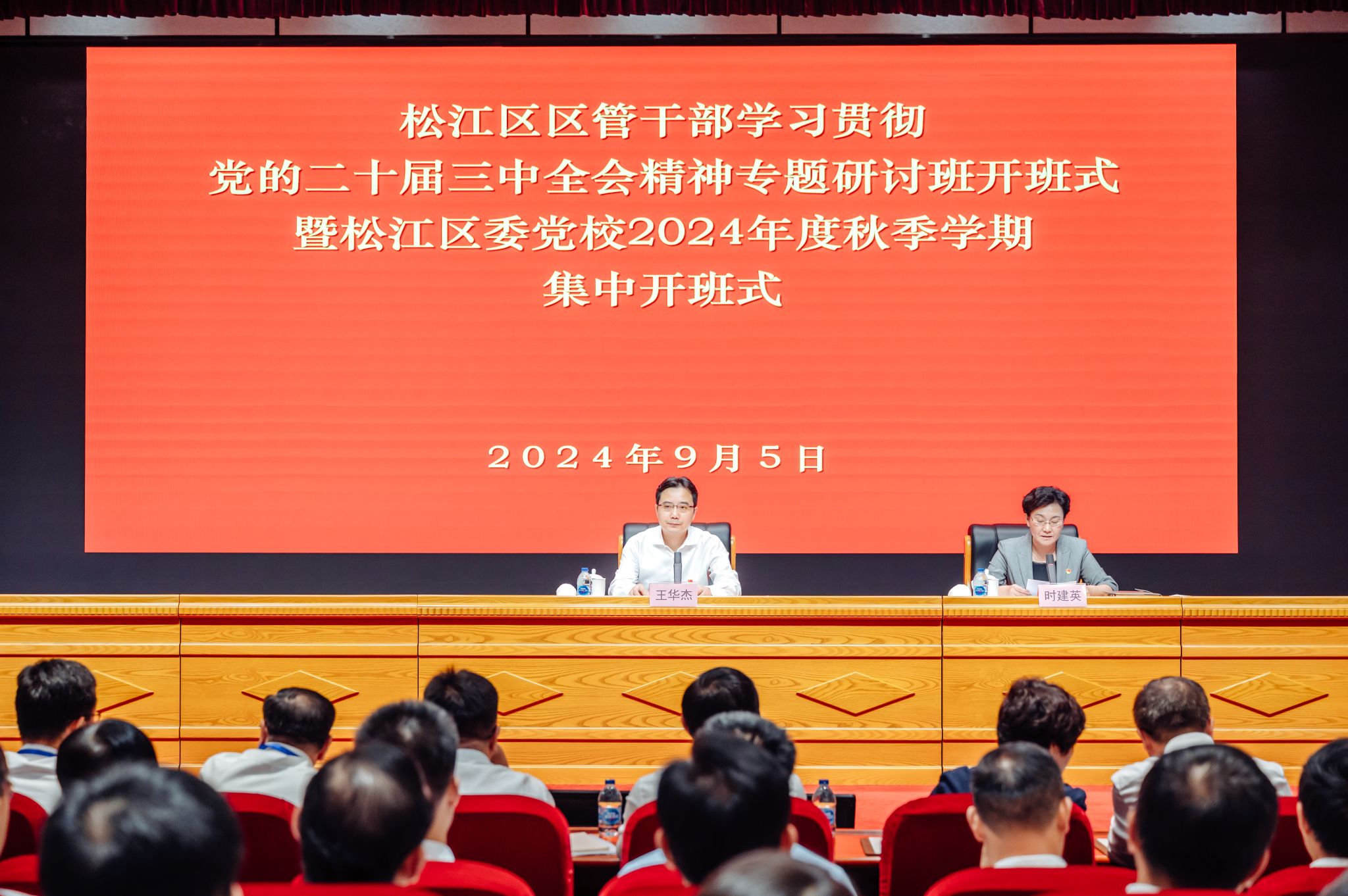 9月5日上午,松江区区管干部学习贯彻党的二十届三中全会精神专题研讨班暨松江区委党校2024年度秋季学期集中开班式在区委党校举行。松江区委书记王华杰作开班报告。开班式由松江区委常委、组织部部长、区委党校校长时建英主持。松江区区管干部学习贯彻党的二十届三中全会精神专题研讨班(第一期、第二期)、区第六期处级干部轮训班、区第二十二期中青年干部培训班学员参加开班式。
