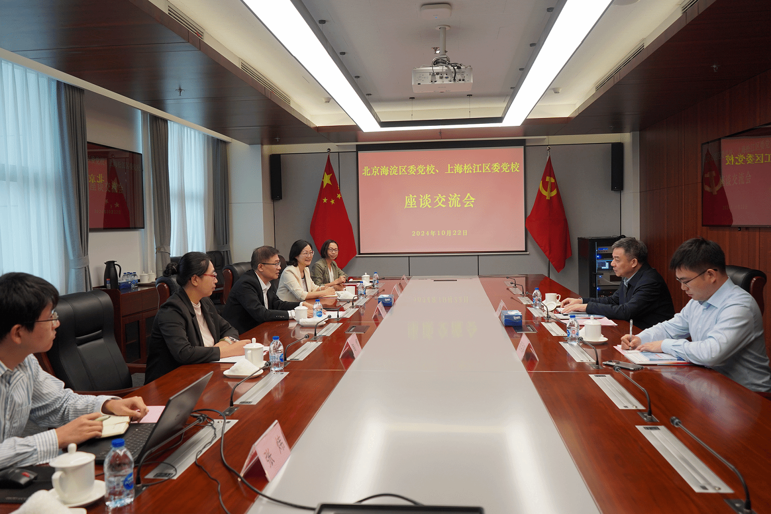 10月22日下午,北京市海淀区委党校常务副校长何昭瑾一行来松江区委党校开展工作交流。松江区委党校常务副校长刘凤强、副校长荀宁军以及相关科室负责人出席交流会。