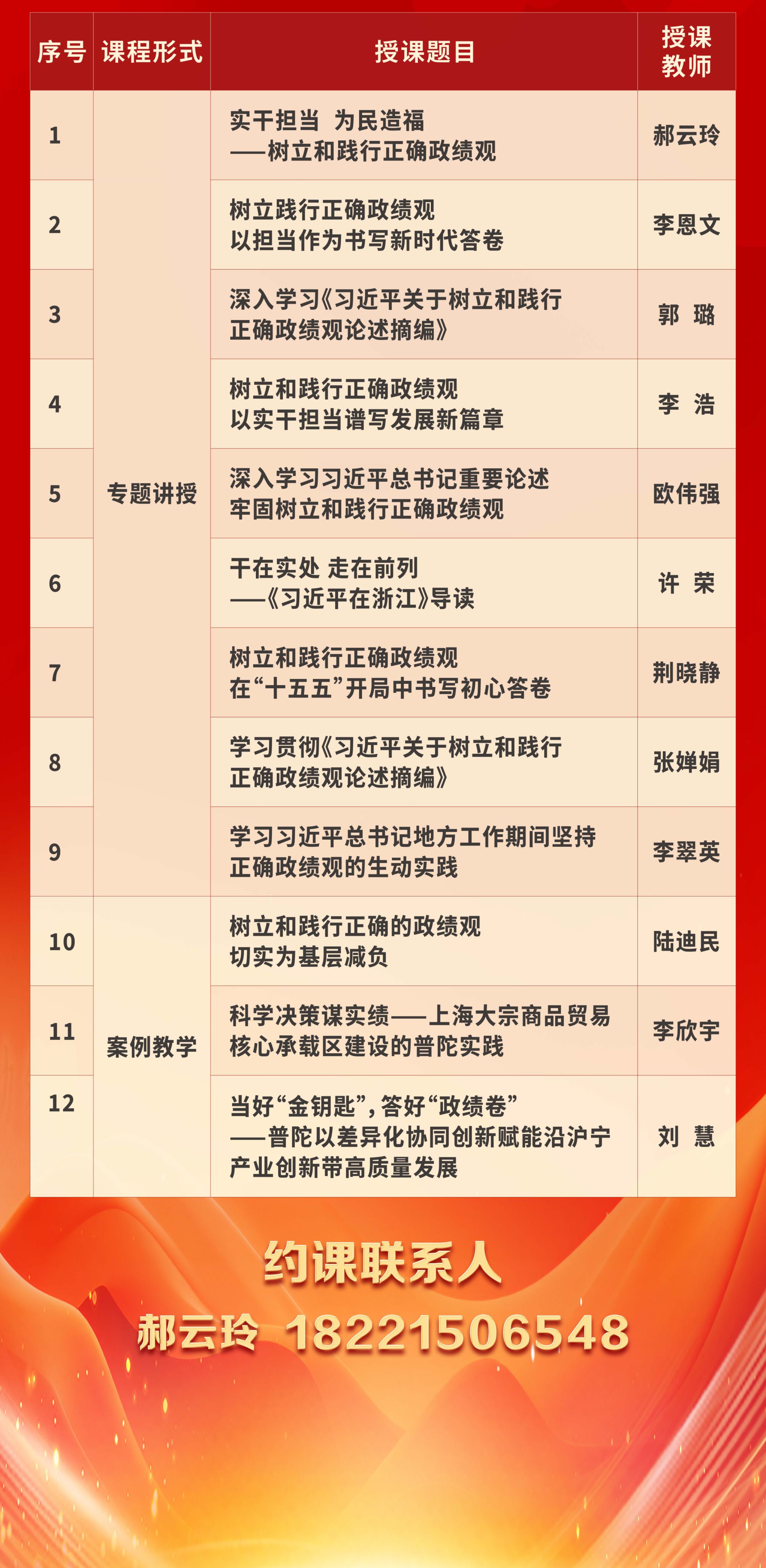 欢迎约课!普陀区委党校“树立和践行正确政绩观”课程清单来啦!