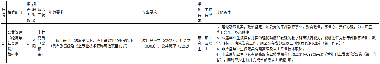 3.招聘岗位:教师,事业编制专业技术岗位。公共管理(经济与社会建设)专业方向2人。