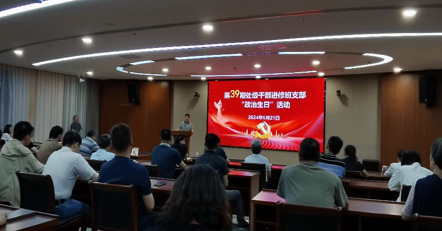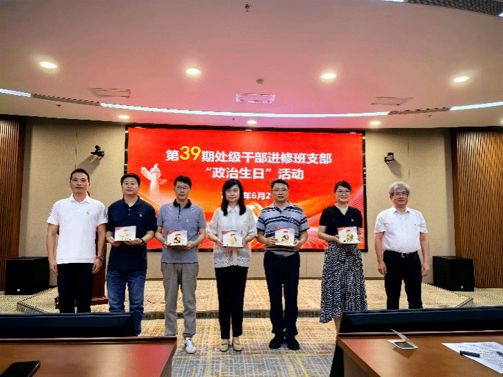 本网讯 6月21日晚,根据支部工作计划,第39期处级干部进修班全体学员在盐城市委党校铁军大厦207教室开展“政治生日”主题党日活动,为赵士珺、张承杰、江礼云、马越、金斌等5名在6月份入党的学员过集体“政治生日”。
