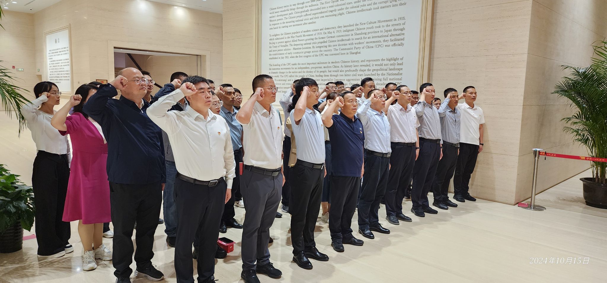 10月15日下午,第7期新疆生产建设兵团经济社会发展专题研讨班学员集体瞻仰中共一大会址,重温入党誓词,并在中共一大纪念馆参观“伟大的开端——中国共产党创建历史陈列”展览。