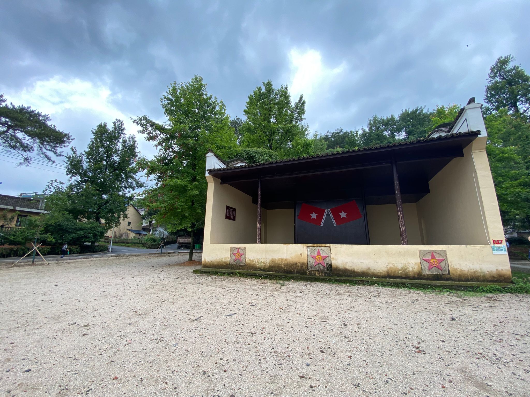 在葛源镇枫林村的闽浙皖赣革命根据地旧址群,附近的许多户人家都是烈士遗属。站在168棵高大的枫树所覆盖着的红军操场旧址中央,感受微微凉风窸窸窣窣穿过这枫叶林,想象着当年漫山遍野的红枫叶下,多少我中华好儿女争先参军、紧跟党走、立志革命。操场西头有一座司令台,1934年12月,方志敏就是在这里召开誓师大会,最后一次与乡亲们告别,挥师北上抗日。