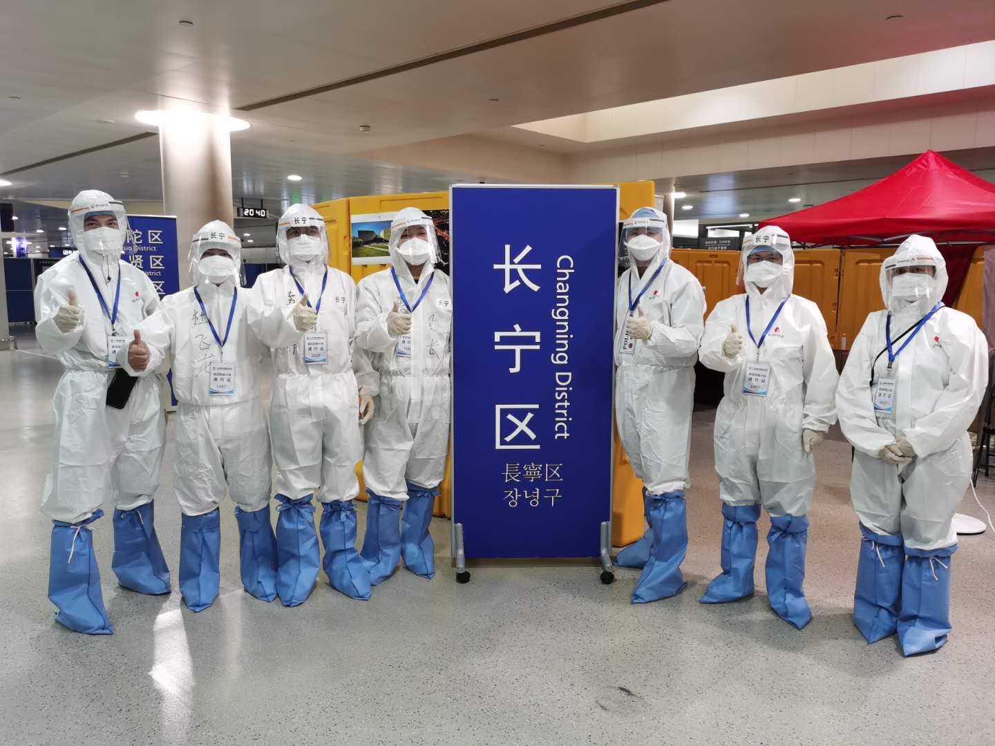 第一次上班就是晚班,而晚上的航班也是相对较多的,那天晚上有三个航班。对于业务相对生疏的我们来说,这无疑是一个巨大的挑战,我们组的几个人共同在一起模拟工作流程,然后进行相应的分工,也不断地互相提醒,为我们的第一个晚班做好充分的准备。看得出来,大家还是比较紧张的,都站在点位前死死盯着飞机落地时间,又会漫无目的地在点位周围转一圈,美其名曰“视察工作”。远远地看着走过的来的人也在小声地嘀咕这究竟是不是我们区要隔离的人员,还记得我们都说自己像“店小二”一样站着迎接来人,没错,我们也确确实实发挥了“店小二精神”,为这些入境需要隔离的人员尽可能地提供了最优质的服务,努力展现着上海市的面貌和所有走上防疫一线逆行者的精神面貌。