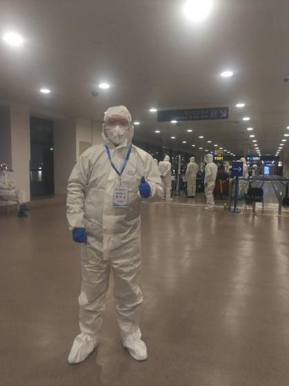 “儿子看了我穿防护服的照片一直夸‘爸爸是白衣天使!’我觉得很不好意思,我所做的肯定远远比不上一线的医护人员,只是力所能及地做了点应有的贡献。”来自浦东区委党校公共管理教研部的浦东机场转运人徐凌说。