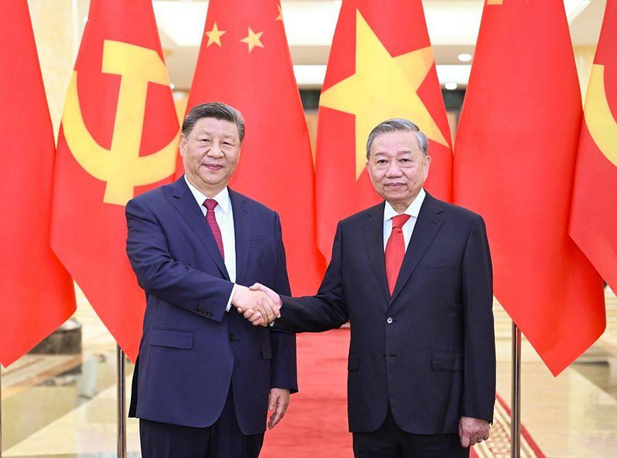 习近平强调,今年是中越建交75周年暨“中越人文交流年”。75年来,无论国际风云如何变化,双方在争取国家独立和民族解放的斗争中相互支持,在社会主义建设事业中携手并进,在推进各自现代化进程中砥砺前行,成为社会主义国家团结合作的典范。面对变乱交织的国际形势,中越两国坚持和平发展,深化友好合作,为世界带来了宝贵的稳定性和确定性。站在新的历史起点上,双方要继往开来、携手前行,赓续“越中情谊深、同志加兄弟”的传统友谊,按照政治互信更高、安全合作更实、务实合作更深、民意基础更牢、多边协调配合更紧、分歧管控解决更好的“六个更”总体目标,高质量推动全面战略合作,确保中越命运共同体建设行稳致远,为构建人类命运共同体作出新的更大贡献。