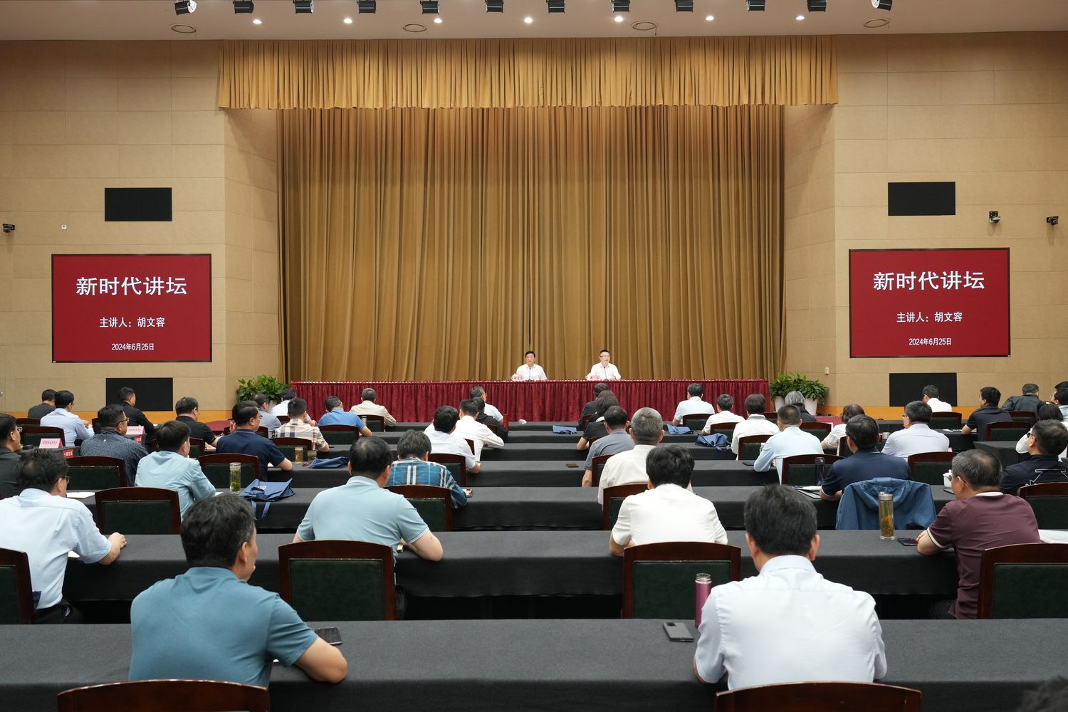 本网讯 6月25日下午,市政协主席胡文容来校主讲新时代讲坛,为学员作“深入践行全过程人民民主重大理念 更好发挥专门协商机构作用”专题报告。副校长戴冰主持。